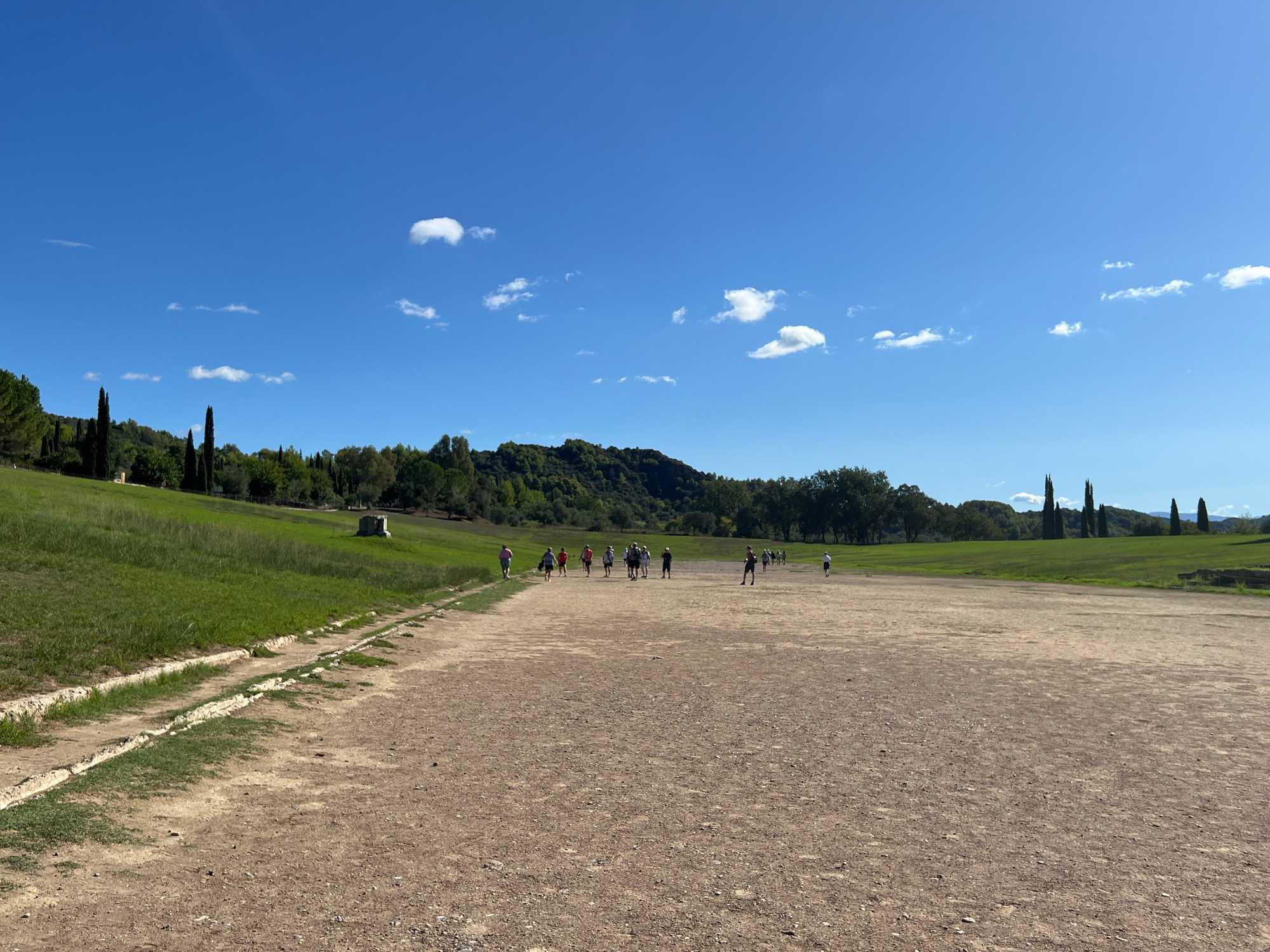 Nous poursuivrons donc notre voyage vers une destination rêvée par plusieurs de nos voyageurs: Olympie, le berceau des Jeux Olympiques. Nous avons environ 35 min de route à faire pour y arriver. De belles routes de campagne nous mène à Olympie. Mais avant d’arriver au site, Madeleine notre guide, nous donne beaucoup d’informations pendant le trajet pour nous préparer à la visite de ce site sublime et aussi sur la fabrication locale d’huile d’olive, impossible à manquer puisque nous sommes entourés d’oliviers tout le long du trajet.