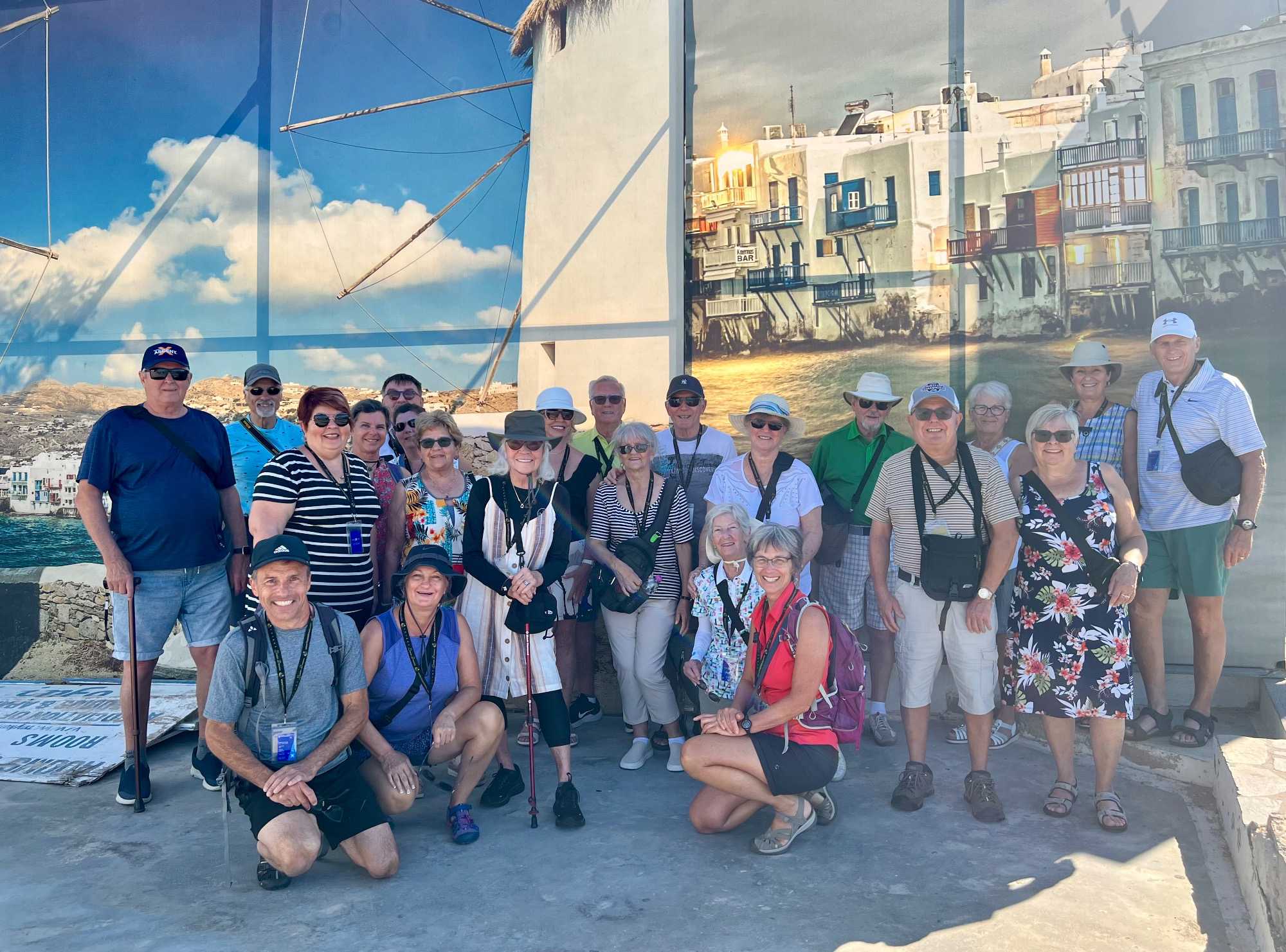 On se réveil avec un magnifique lever de soleil sur cette île paradisiaque. Après un bon déjeuner nous sommes prêts pour une nouvelle journée de découvertes sur la bien connue île de Mykonos. Avant de quitter le navire, j’ai réuni les voyageurs, afin de donner quelques explications sur cette île. La visite est libre aujourd’hui, mais je propose de faire une promenade avec les voyageurs, question de voir les principaux sites et de nous orienter (car c’est assez labyrinthique!) Est-ce que je vous avais dit que notre groupe était fantastique, généreux, respectueux et surtout très ponctuel? Nous avons eu droit à une sortie VIP en navette (petit bateau). Pas d’attente pour nous! C’est ça les voyages Louise Drouin 😉.