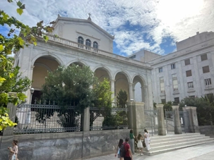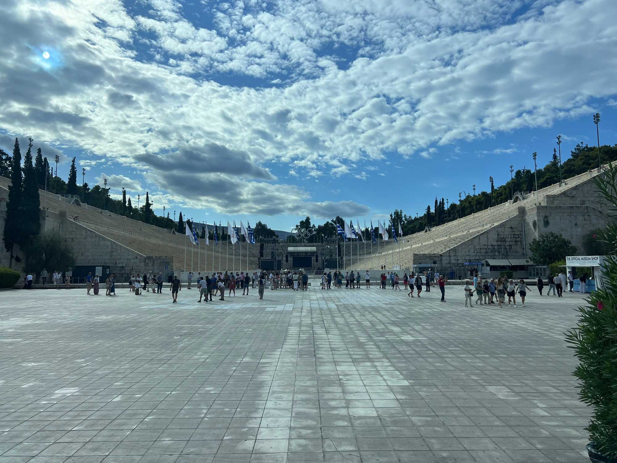 Lors de la visite panoramique de la ville nous constatons qu’elle regorge de vestiges impressionnants comme berceau de la culture européenne et en tant que l’une des plus anciennes villes du monde. À la place Syntagma, siège du parlement, nous avons vu (du bus) les gardes appelés « Evzones » dans leur uniforme antique. Ils ont pour mission de garder la tombe du Soldat inconnu. Nous faisons aussi un petit arrêt au 1er stade olympique de l’ère moderne (1896). On s’arrête à la porte d’Hadrien. Nous avons vraiment effectué un beau tour panoramique de la ville.