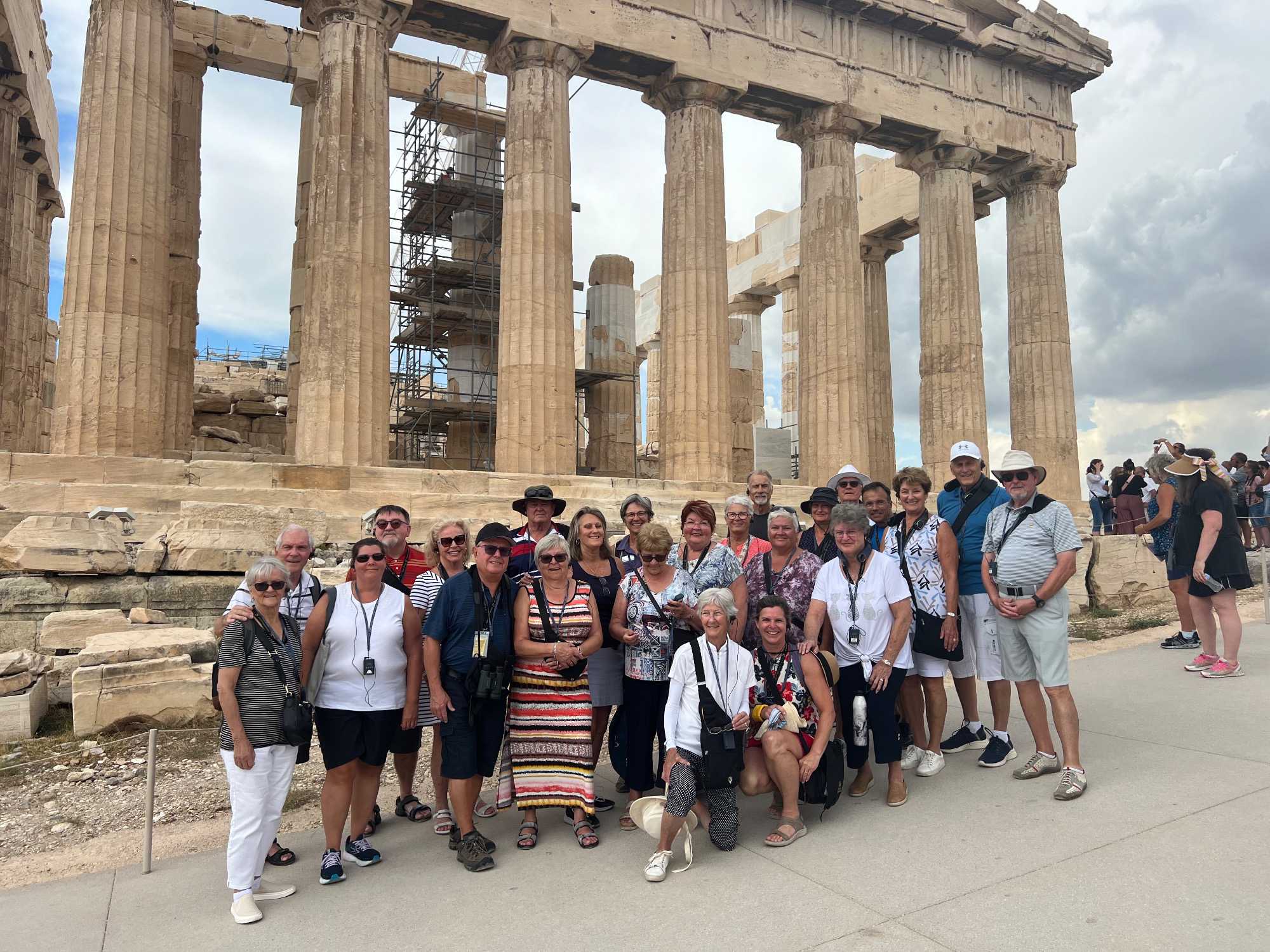 Le mot « Acropole » signifie « ville haute ». Il existe de nombreuses acropoles en Grèce, toujours situées en un endroit surélevé afin de voir venir les voyageurs ou les ennemis éventuels, de se préparer à une possible attaque ou de servir de refuge face aux divers ennemis. Comme le dit le site officiel de l’UNESCO, « l’Acropole d’Athènes et ses monuments sont le symbole universel de l’esprit et de la civilisation classiques, et forment le plus extraordinaire ensemble architectural et artistique légué par la Grèce antique au reste du monde. » Vous comprendrez alors que c’est avec un certain recueillement que notre groupe y pénètre.