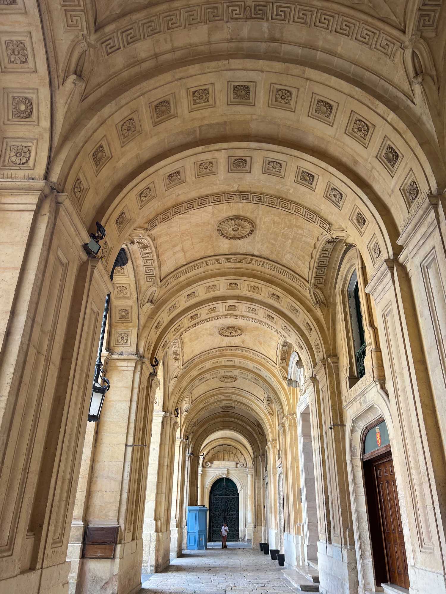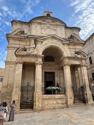 Après la visite de cette belle ville, la tête et le coeur encore remplis d’images et de moments forts, nous revenons finir notre journée de visite à La Valette. Nous commençons notre visite par l’extérieur de la cathédrale Saint-Jean. Financée et commandée par Jean de la Cassière, grand Maître de l’Ordre, elle fut construite entre 1573 et 1577 par les chevaliers de l’Ordre de Saint-Jean de Jérusalem. Il en fit l’église conventuelle des chevaliers et son titre de cathédrale lui fut conféré par Pie VII en 1816, titre qu’elle partage avec la cathédrale Saint-Pierre-et-Saint-Paul de Mdina. À l’époque, les chevaliers étaient répartis par langues et regroupés dans une même auberge. Cette division se retrouve dans la cathédrale Saint-Jean qui possède huit petites chapelles représentant chacune des langues.