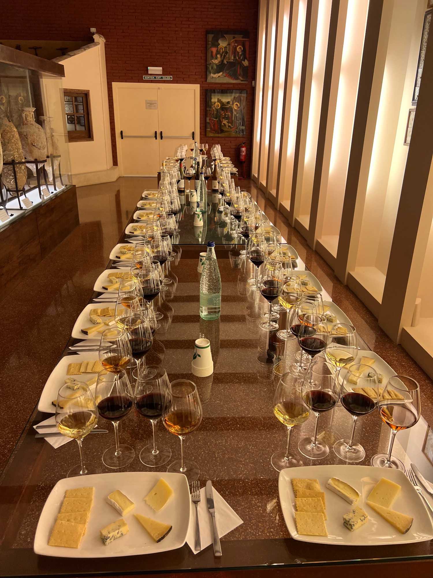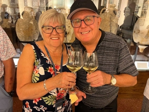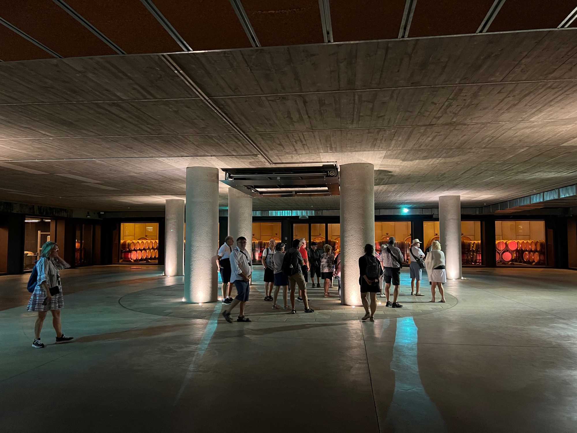 Vilafranca del Penedès compte 18 000 habitants. Le penedès est un vin espagnol dont la dénomination d’origine est protégée. Il appartient au vignoble de Catalogne. Située entre Barcelone et Tarragone, ses vignes s’étagent entre la Méditerranée et le massif de Montserrat. Nous y sommes pour la visite d’une cave à vin, celle de la famille Torrès, une tradition familiale depuis 1870. Cette famille possède des vignobles également en Californie et au Chili. Nous écoutons un vidéo confortablement assis dans un théâtre et à la fin, quelle n’est pas notre surprise de voir arriver le propriétaire qui nous parle avec un excellent français. Il a été bien gentil de prendre le temps de venir nous saluer. On poursuit la visite du site en compagnie de Daniel, un guide francophone qui travaille comme biochimiste à la maison de Torrès, avec un tour en petit train électrique (cette maison est très attentive à l’écologie et l’environnement, ça fait plaisir à entendre) qui nous amène à travers les vignes jusqu’aux caves. La grande salle est très théâtrale avec l’effet de lumière, on nous surprend. Puis retour à la maison principale où nous avons une dégustation de quatre vins avec autant de fromages assortis aux vins. Le premier, un blanc Waltraud riesling 2016 accompagné d’un brie avait une saveur de pommes. Notre deuxième, un rouge Clos Ancestral 2022 à saveur de framboise avait un goût fruité et léger. Notre troisième, un rouge Secret del Priorat 2021 plus corsé et savoureux en bouche. Pour terminer le Floralis Moscatel Oro avec ses arômes de fleurs peut-être servis comme apéritif avec un fromage bleu, entrées froides, pâtisserie ou tout simplement pour accompagner un bon dessert. Devinez lequel j’ai le plus aimé? (Il y avait aussi du vin sans alcool pour ceux qui préférait).