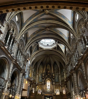 Après notre dîner, c’est tout joyeux que nous reprenons la route. Des chansons à répondre, de vieilles chansons, tout est bon pour mettre de l’ambiance dans le bus. Mais une fois arrivé à notre prochaine destination, nous sommes redevenus sages et avons écouté les explications de Miquel. Montserrat, c’est la montagne sacrée des catalans. Nous faisons l’ascension de la montagne en téléphérique. Wow, quel magnifique paysage! On adore! Puis l’attraction majeure de l’endroit demeure la visite de l’abbaye Santa Maria de Montserrat, une abbaye bénédictine de l’ordre de Saint-Benoit. Déjà au Moyen-âge ce lieu de pèlerinage s’est imposé comme le premier sanctuaire marial de Catalogne. Le sanctuaire est un haut lieu du tourisme international, la deuxième destination la plus visitée en Espagne. L’abbaye fut inaugurée en 1592, la vierge noire y trône sur un socle en argent et l’autel est fait d’un bloc de pierre de huit tonnes.