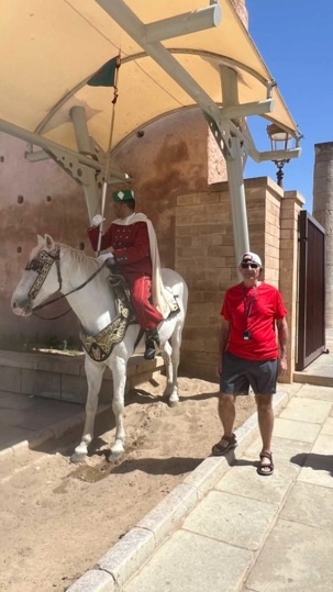 Nous poursuivrons notre visite vers la Kasbah des Oudaïas, construite au XIIe siècle par les Almohades, elle s’appelait à l’origine Mehdiya. Lorsqu’on pénètre dans l’enceinte par l’imposante et magnifique porte, on remarque tout de suite l’influence andalouse. Tout ici rappelle l’Espagne : les murs uniformément recouverts de chaux, la couleur bleue omniprésente, les ruelles pavées, les portes massives aux moulures colorées, le fer forgé… C’était le lieu de départ des soldats en partance pour la guerre sainte en Espagne. C’est vraiment une belle découverte pour notre groupe de voyageurs que cette première kasbah. Nous avons donc profité du moment pour déguster un thé à la menthe (whisky berbère) au café maure, une petite pause très agréable avant de sortir de la kasbah par ses magnifiques jardins.