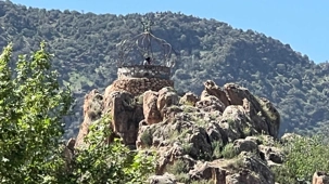 Nous faisons d’abord une petite halte à Ifrane, une commune urbaine située dans les montagnes du Moyen Atlas, à 1 713 mètres d’altitude qui compte près de 35 000 habitants. Elle est réputée pour son architecture de style alpin et ses pistes de ski et les forêts de cèdres qui l’entourent. Crée par les Français en 1930 comme destination de vacances, Ifrane est le lieu de villégiature des gens fortunés du pays. En raison de son altitude, il y neige abondamment durant les mois d’hiver et elle connait un climat plus frais en été. Propre et agréable, Ifrane dispose de parcs, de lacs bordés de chalets magnifiques aux toits rouges qui tranchent avec le vert de la nature ambiante. C’est en raison de ces caractéristiques qu’on la surnomme la petite Suisse marocaine. Ifrane tient son nom du mot berbère « Ifri » au singulier, « Ifrane » au pluriel, qui signifie grotte. La région est largement connue pour sa multiplicité de grottes qui s’étendent jusqu’à la localité d’El Hajeb. Été comme hiver, Ifrane et sa région offrent d’innombrables loisirs : randonnées, sports de glisse sur les pentes d’un ancien volcan, pêche à la truite ou au brochet, chasse aux sangliers, aux sangliers, aux perdreaux et aux lièvres… En bons touristes que nous sommes, nous nous sommes bien sûr arrêtés pour prendre quelques photos du célèbre lion de pierre du sculpteur Henri Jean Moreau (1890 - 1956).