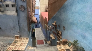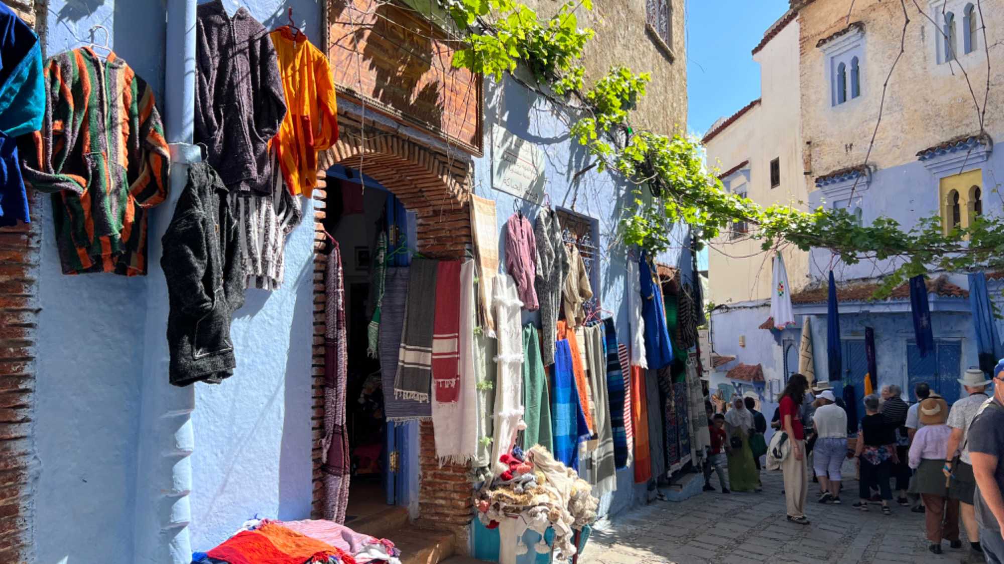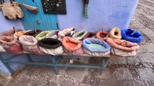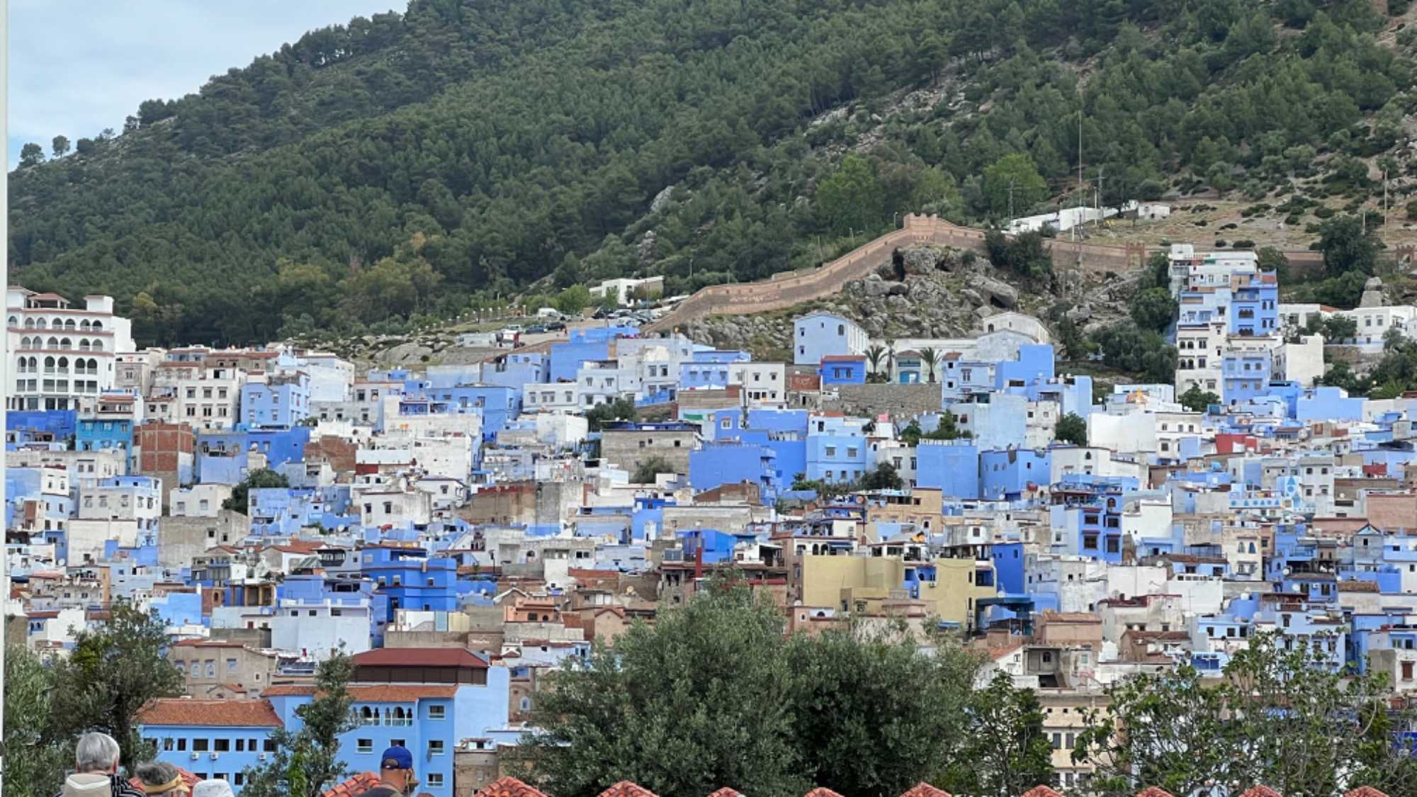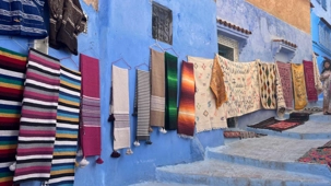 Après ce bon repas, nous faisons une balade pour découvrir cette charmante petite ville bleue, dont Saïd, notre guide, nous raconte l’histoire. Chefchaouen, ou Chaouen, est une ville située dans les montagnes du Rif, au nord-ouest du Maroc. À flanc de colline, Chefchaouen est réputée pour ses bâtiments remarquables de différents tons de bleu délavé. Des ateliers de maroquinerie et de tissage bordent ses allées aux pavées abruptes. Sur la place centrale ombragée d’Outa el Hammam se trouve la casbah aux murs rouges, forteresse et donjon du XVe siècle où se trouvent des expositions ethnographiques et artistiques. Le minaret octogonal de la Grande Mosquée s’élève non loin de là. L’artisanat de cette région joliment mis en valeur semble être une grande source de revenus pour les habitants.