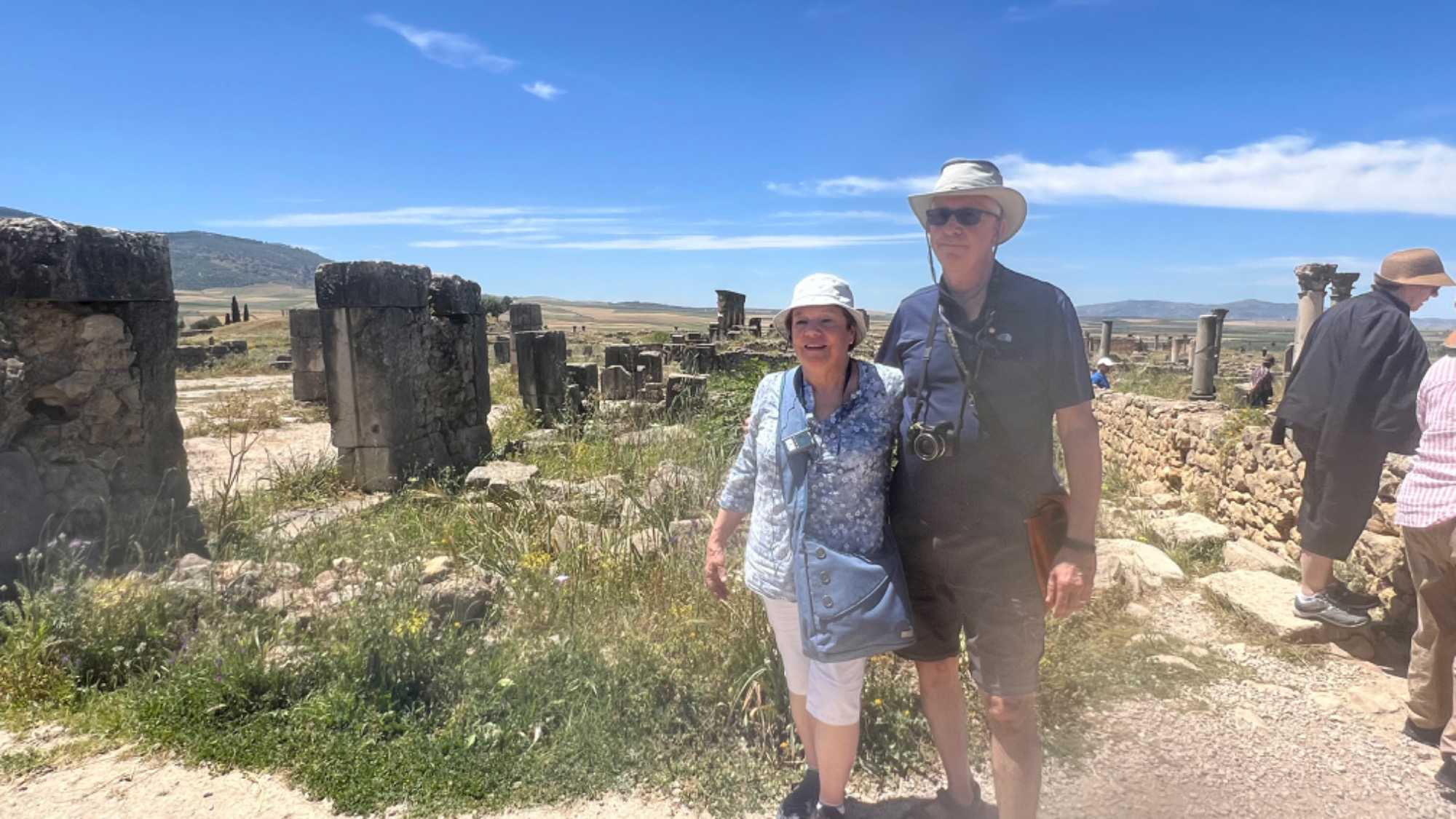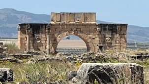 Après le petit déjeuner, nous montons à bord de l’autobus pour poursuivre notre route vers Volubilis, notre prochain arrêt découverte. Confortablement assis dans nos sièges, on observe la mosaïque de cultures maraichères diverses s’étalant à droite et à gauche, comme un tableau de maitre. À Volubilis, on s’arrête pour admirer les alentours et effectuer plusieurs photos ici et là et surtout en face de la nécropole de Chellah érigée en 1339 sous le règne d’Abou al-Hassan Ali. Said nous apprend que cette nécropole a été bâtie sur les ruines de l’ancienne cité romaine de Sala Colonia, mais elle n’a pas toujours bénéficié de l’engouement actuel, car comme la Tour Hassan elle a longtemps été laissée à l’abandon pendant plusieurs centaines d’années. Après avoir franchi la célèbre porte octogonale très bien restaurée, les touristes peuvent descendre le long d’un agréable chemin dallé bordé d’arbres d’essences variées et de fleurs odorantes. Au printemps, le site en pleine floraison est tout simplement féérique. De cet endroit, nous pouvons admirer le magnifique panorama de la ville sainte de Moulay Idris perchée en haut d’un piton rocheux dominant la vallée de l’Oued Erroumane. Au risque de me répéter, je vous jure qu’ici une photo vaut mille mots… ouf!