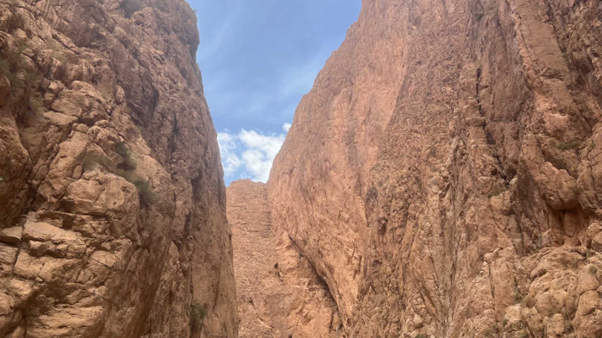 Pour l’arrêt suivant, on se permet une promenade dans les magnifiques gorges de Toudra taillées depuis des millénaires et situées à 15 km de Tinghir. Elles sont très fréquentées par les grimpeurs pour leurs parois pouvant atteindre 300 mètres (près de 1000 pieds). Ces parois sont très bien équipées, mais beaucoup sont encore vierges. C’est un paradis pour les grimpeurs, les amateurs de photographie, les cyclistes et les randonneurs. Nous avons fait une belle promenade le long de la rivière Toudgha qui alimente Tinghir en énergie et de nombreux villages de la Vallée de Toudra. Les habitants cultivent ici principalement des dattes, des olives, des pommes, des amandes, des abricots et des céréales.