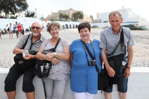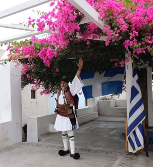 Nous étions tous éblouis du décor. Ce village est fabuleux ! C'est tout à fait ce qu'on imagine de Santorini, tout ce qu'on voit sur les cartes postales, ce bleu, ce blanc, il y en a tout autour…c'est splendide ! À la hauteur des attentes de chacun et même plus. Il semble que nous espérons, pour la plupart d'entre nous, venir y passer un moment. Nous avons flâné, au gré de ses petites ruelles, de ses coins et recoins, appréciant chaque moment. Certains magasinent, d’autres se rafraichissent sur les terrasses en y savourant une boire bière grecques froides. Car il fait tout de même très chaud!