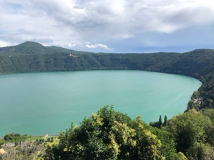 Après s'être gâtés en achetant quelques bonnes bouteilles, nous reprenons la route pour visiter le petit village : Castel Gandolfo, situé aux abords du lac d'Albano. C’est un lac d’une profondeur de 170 m formé dans le cratère d’un ancien volcan sur une circonférence de 10 Km. Mieux connu sous le nom du Palais des Papes. C’est la résidence secondaire du Pape, depuis le 12e siècle.