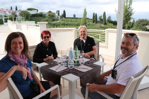 Le débarquement a sonné!!! Nous sommes fin prêts malgré un peu d'anxiété palpable. Il est tôt et il y a déjà plusieurs bateaux au port de Rome. Par contre tout se passe bien, car les instructions lors de la réunion de débarquement fait la veille ont été suivies à la lettre. La fatigue est aussi au rendez-vous. Après 14 jours de vie à bord du bateau, d'excursions, de 5 à 7...la dernière journée s'annonce un peu plus difficile. Nous retrouvons notre guide initial, Alessandro, gagnons notre bus et nous mettons en route. Direction un super vignoble où il y a aussi mise en valeur des produits du terroirs.