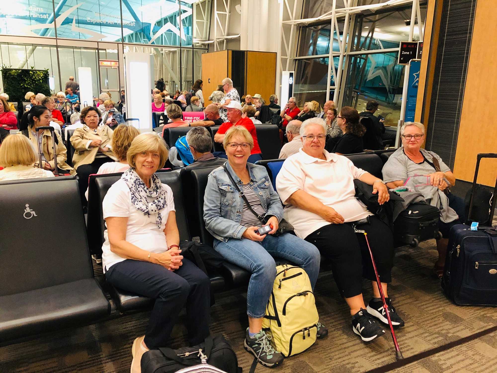 Les voyageurs ont un large sourire à leur arrivée au comptoir d’Air Transat. Il y a de l’électricité dans l’air! Tous ont hâte de découvrir de nouveaux horizons. L'enregistrement se fait en deux temps et trois mouvements. Ainsi, une fois la sécurité franchie, chacun peut relaxer à sa guise, au resto, au bar, dans les magasins ou tout simplement calé dans un fauteuil en bavardant agréablement avec les membres de notre groupe. Une fois tous nos voyageurs enregistrés, nous les retrouvons et on prend le temps de faire connaissance. Ils proviennent de plusieurs régions du Québec et plusieurs d’entres eux ont déjà voyagé avec Voyage Louise Drouin. Déjà, des liens se tissent et on sent qu'il y aura une bonne et agréable atmosphère dans le groupe.