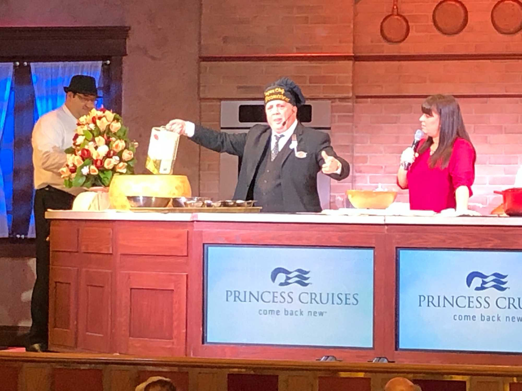 Après le dîner, on s’est réuni dans la petite chapelle (en anglais ils disent Wedding Chapel) afin de donner des explications sur la procédure de débarquement. C’était la seule salle disponible pour la réunion sur tout le navire. C’est ironique parce que Marlaine et Daniel se font dire de se marier depuis le début du voyage… Voilà une belle occasion pour Gaston de se prêter au jeu et de les acceuillir cérémonieusement avec le collet romain et son cartable Princess sous le bras. Marlène et Daniel ont bien voulu jouer le jeu en arrivant à la rencontre chacun avec une coupe de champagne! Un moment cocasse fort agréable qui nous a bien fait rire et a su plaire à tous.