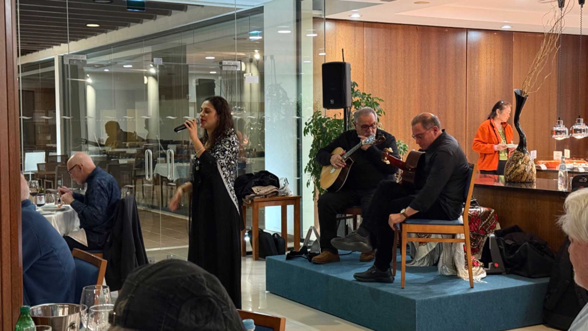 Durant le séjour, nous aurons quelques soupers thématiques fort amusants. Notre premier a tourné autour du chant Fado, ce genre musical typiquement portugais, constitué de chants populaires au thème mélancolique accompagné d’instruments à cordes pincées dont la guitarra, une cithare en forme de poire à douze cordes métalliques. J’en profite pour vous parler de la Reine du fado, Amália Rodrigues qui a enregistré plus de 170 disques au cours de sa vie!