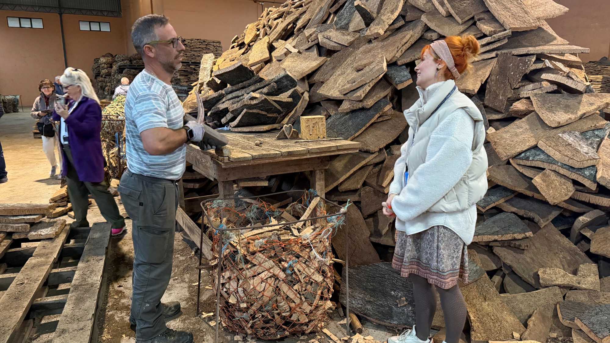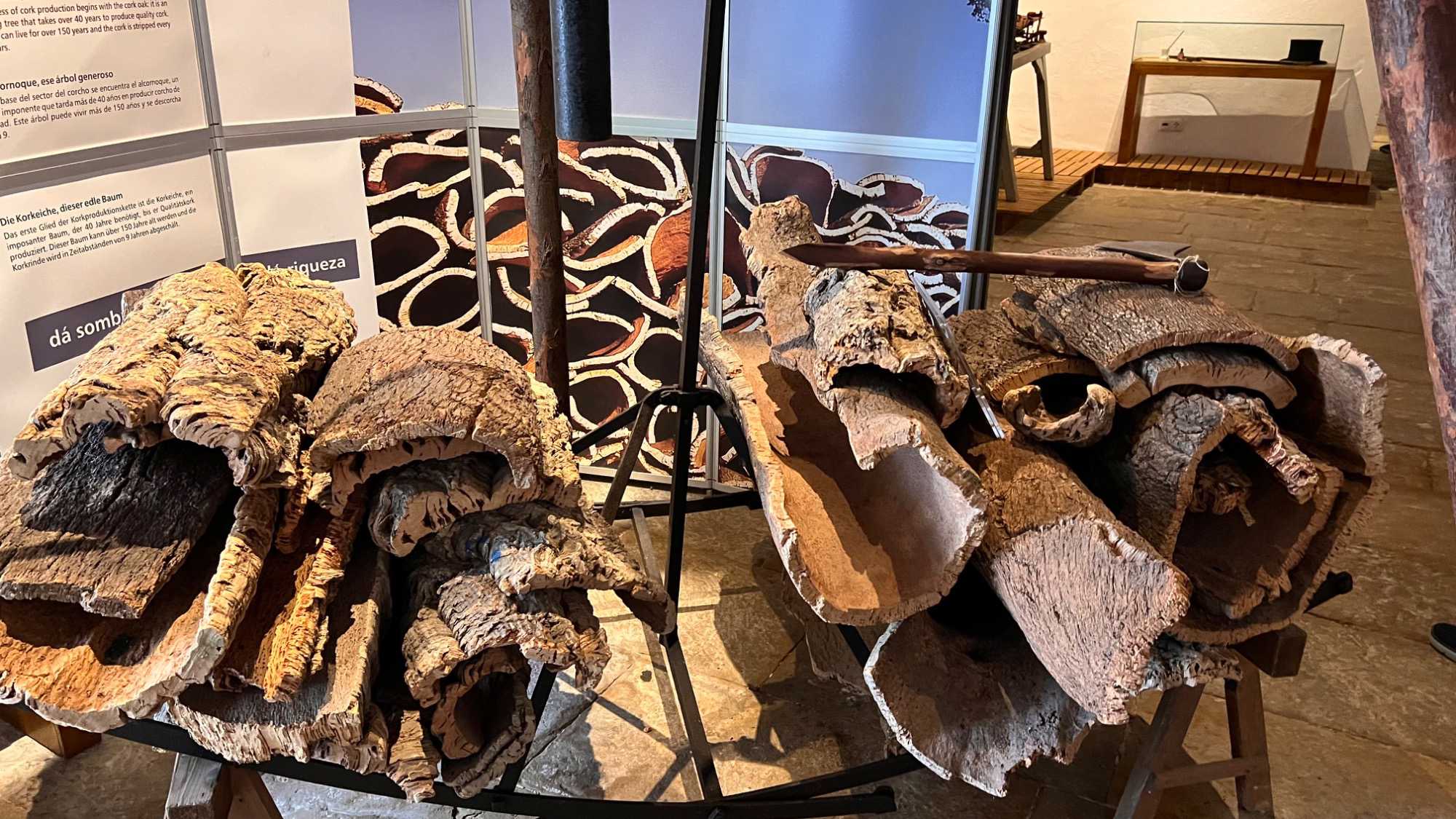 Nous commençons justement notre visite par l’usine de transformation du liège pour en savoir plus sur l’arbre national du Portugal et sur ce produit écologique. Il faut savoir que le Portugal est un des trois plus grands producteurs de liège au monde. On nous apprend que c’est seulement après 25 ans qu’un chêne-liège va donner son premier liège qui n’est pas toujours le meilleur. Après la première cueillette, on récolte le liège tous les 9 ou 12 ans dépendamment de ce que nous voulons en faire. La récolte est faite entre juin et août de chaque année et il est transformé en usine selon des règles très strictes et selon ce qu’on veut en faire. On nous explique ici toute la transformation, de la sélection jusqu’aux applications possibles : de la façon d’enlever l’écorce de l’arbre jusqu’à la transformation en bouchons pour les bouteilles de vin ou la fabrication d’objets divers, tels sacs ,vêtements, souliers, bottes, porte-monnaies, etc. Il est fort intéressant de savoir que le liège possède des caractéristiques innées et uniques : résistant et léger, isolant thermique et acoustique, imperméable aux liquides, élastique et compressible, résistant au feu et hypoallergénique. Mais d’abord et avant tout, il faut se rappeler que c’est une matière 100 % naturelle, renouvelable et biodégradable. Ouf! Quelle matière remarquable en effet! Bien sûr, nous en avons profité pour faire quelques achats. Hihi!