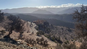 Frais et dispos, nous sommes prêts pour une nouvelle excursion qui nous mènera à Tafraoute et à Aguerd-Oudad. Tôt levés et rassasiés par un bon petit déjeuner, nous prenons la route pour parcourir 165 kilomètres avant d’arriver à destination. Si le Maroc est aussi grand que le Québec, les routes sinueuses à souhait dans des paysages arides, uniques et sublimes sauront vite nous faire avaler nos trois heures de route en un clin d’œil. Ici aussi les changements climatiques marquent le territoire et les gens : il n’y a pratiquement jamais de pluie, tant et si bien que même les réservoirs et les barrages sont à sec. Il en faut de la résilience et des ressources chez tous ces habitants pour s’adapter et perdurer dans de difficiles conditions.
