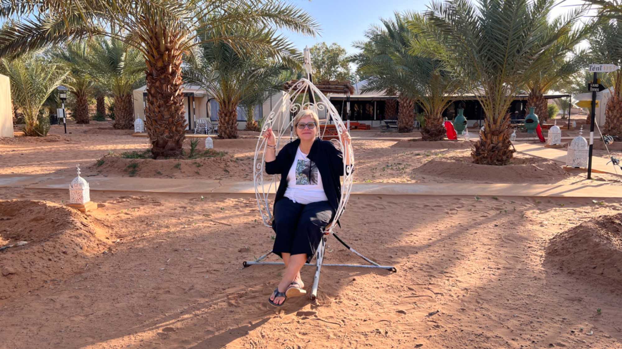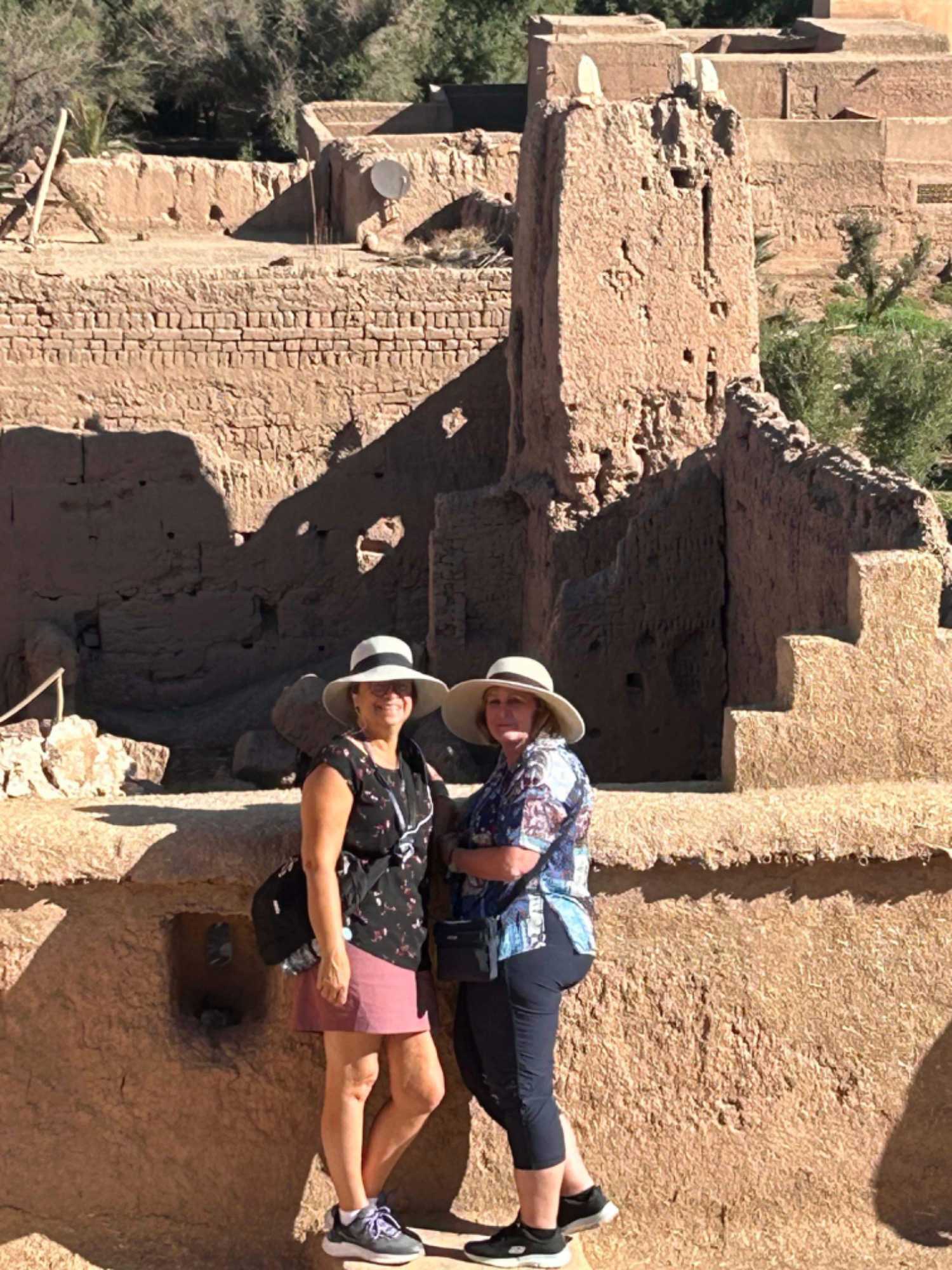 Nous arrivons à notre hôtel de Sakoura, une casbah typique où nous passerons deux nuits. C’est l’heure du repos avant un petit apéro pour connaître le vin gris de la région. Tous apprécient ce moment de détente offert par VLD. Tout le monde va bien et le vin gris délie les langues et facilite les échanges et les bonnes blagues. Pour souper, il y a entre autres une soupe à l’oignon qui a su conquérir même celles et ceux qui étaient plutôt septiques. Nous sommes si bien qu’on se croirait à la maison tant l’atmosphère est conviviale. Ça placote et ça rigole en masse!