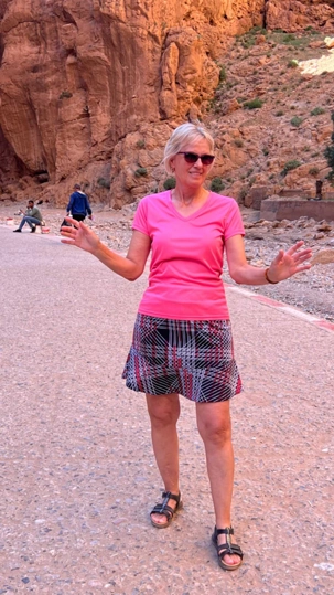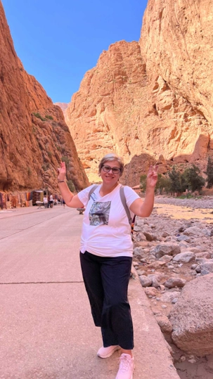 Nous dinons dans un petit resto sympathique puis nous nous dirigeons vers Toudra pour voir les magnifiques gorges taillées depuis des millénaires et situées à 15 km de Tinghir. Elles sont très fréquentées par les grimpeurs pour leurs parois pouvant atteindre 300 mètres (près de 1000 pieds). Ces parois sont très bien équipées, mais beaucoup sont encore vierges. C’est un paradis pour les grimpeurs, les amateurs de photographie, les cyclistes et les randonneurs. Nous avons fait une belle promenade le long de la rivière Toudgha qui alimente Tinghir en énergie et de nombreux villages de la Vallée de Toudra. Comme toujours, je ne me lasse pas de ce canyon majestueux.
