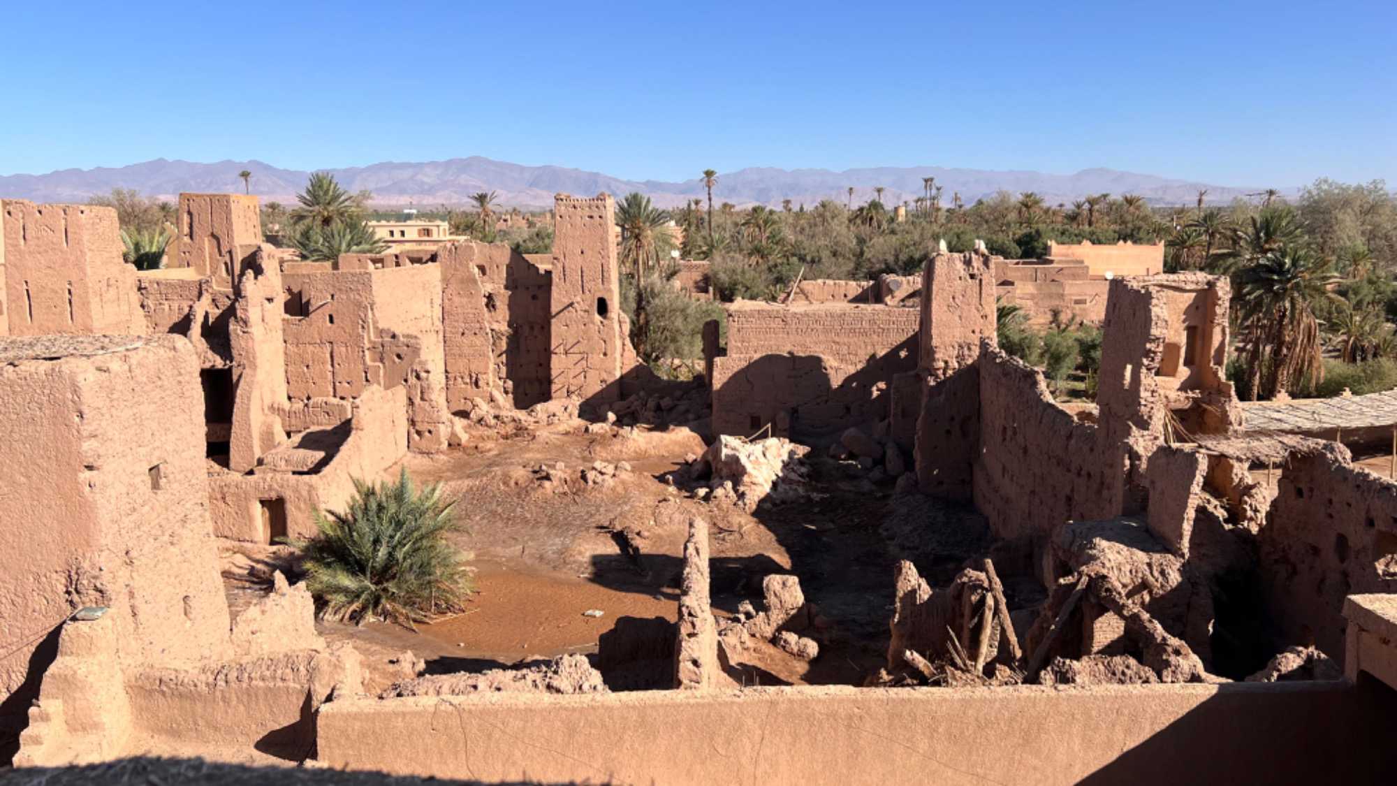 Cette palmeraie fait vraiment figure de miracle au milieu du désert. Il est difficile de comprendre comment un endroit aussi luxuriant a pu surgir de nulle part au milieu d’une zone aussi aride. La réponse réside dans les dizaines de fossés et de canaux d’irrigation alimentés par les rivières Hajaj et Madri, chargés de fertiliser les terres environnantes. Ces deux rivières, qui transportent l’eau depuis les derniers contreforts du Haut Atlas, possèdent un débit intermittent, mais suffisamment abondant pour alimenter les aquifères de la zone. En marchant dans la palmeraie, on nous apprend ici tous les rudiments de la culture agricole et comment les locaux y vivent et en vivent. C’est actuellement la saison pour récolter les dattes et l’ouvrage ne manque pas.