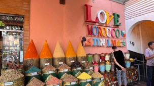 Nous nous promenons ensuite dans le souk de Marrakech. Ici c’est très spécial, nous côtoyons toutes sortes de moyens de transport dans ces petites rues super étroites : vélos, motos, charriots, ânes… Nous restons bien groupés pour ne pas être bousculés et ne pas nous perdre car seul sans Saïd, c’est impossible de s’y repérer. Dans certains quartiers de Marrakech, comme notamment celui du quartier juif, on aperçoit plusieurs maisons qui ont été touchées par le tremblement de terre de l’année passée.