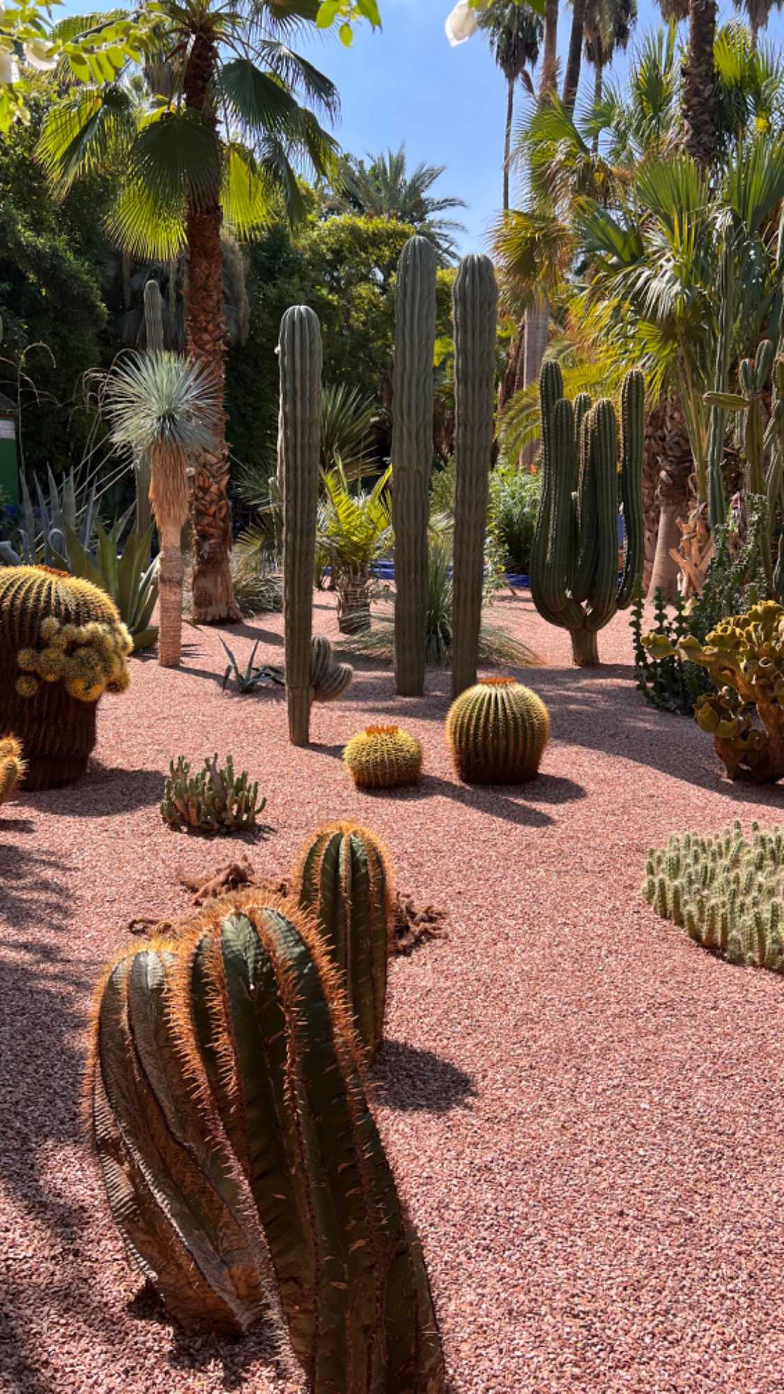 Le jardin qui se déploie sur 9000 mètres carrés est certainement l’un des jardins les plus enchanteurs et mystiques du Maroc, voire du monde. Situé dans le quartier Guéliz, il porte le nom de son créateur, le peintre français Jacques Majorelle qui s’était fait construire une villa dans la médina de Marrakech dont il était tombé amoureux en 1919. Épris de botanique, dès 1922, il conçoit son jardin botanique inspiré de jardins islamiques avec la luxuriance des jardins tropicaux autour de sa villa. Créé en l’espace de quarante ans, l’ensemble, entouré de murs, consiste en un labyrinthe d’allées qui s’entrecoupent, de niveaux qui s’enchevêtrent et de bâtiments mauresques de style Art déco aux couleurs hardies. Le jardin est un gigantesque et opulent amoncellement de plantes et d’arbres exotiques provenant des contrées les plus lointaines, conçu à la fois comme un sanctuaire et comme un laboratoire pour le peintre.