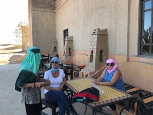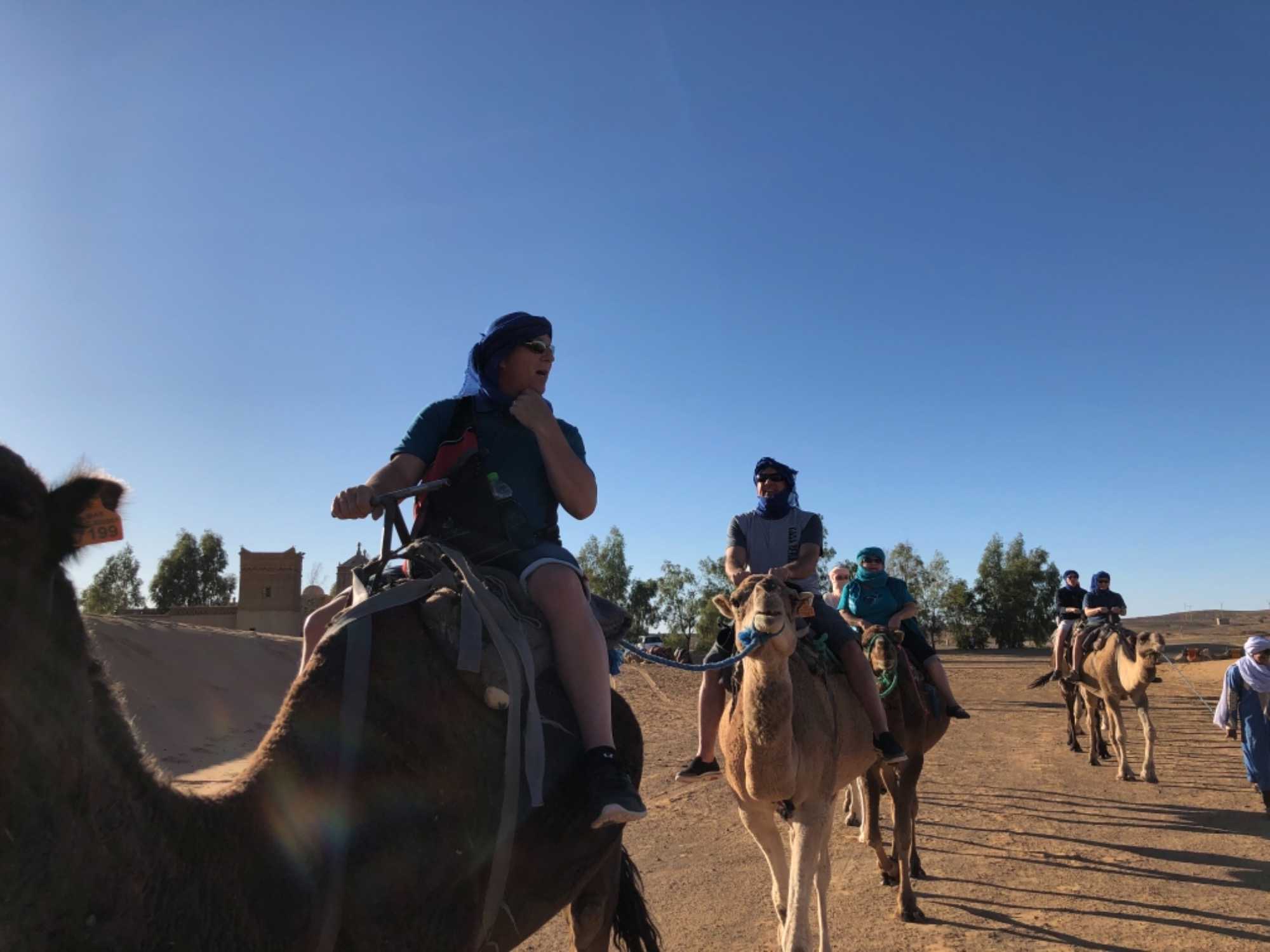 Sur le coup de 17h00, on repart cette fois ci pour les dromadaires. Les gens de l’auberge installent nos chestes pour notre balade en dromadaire.