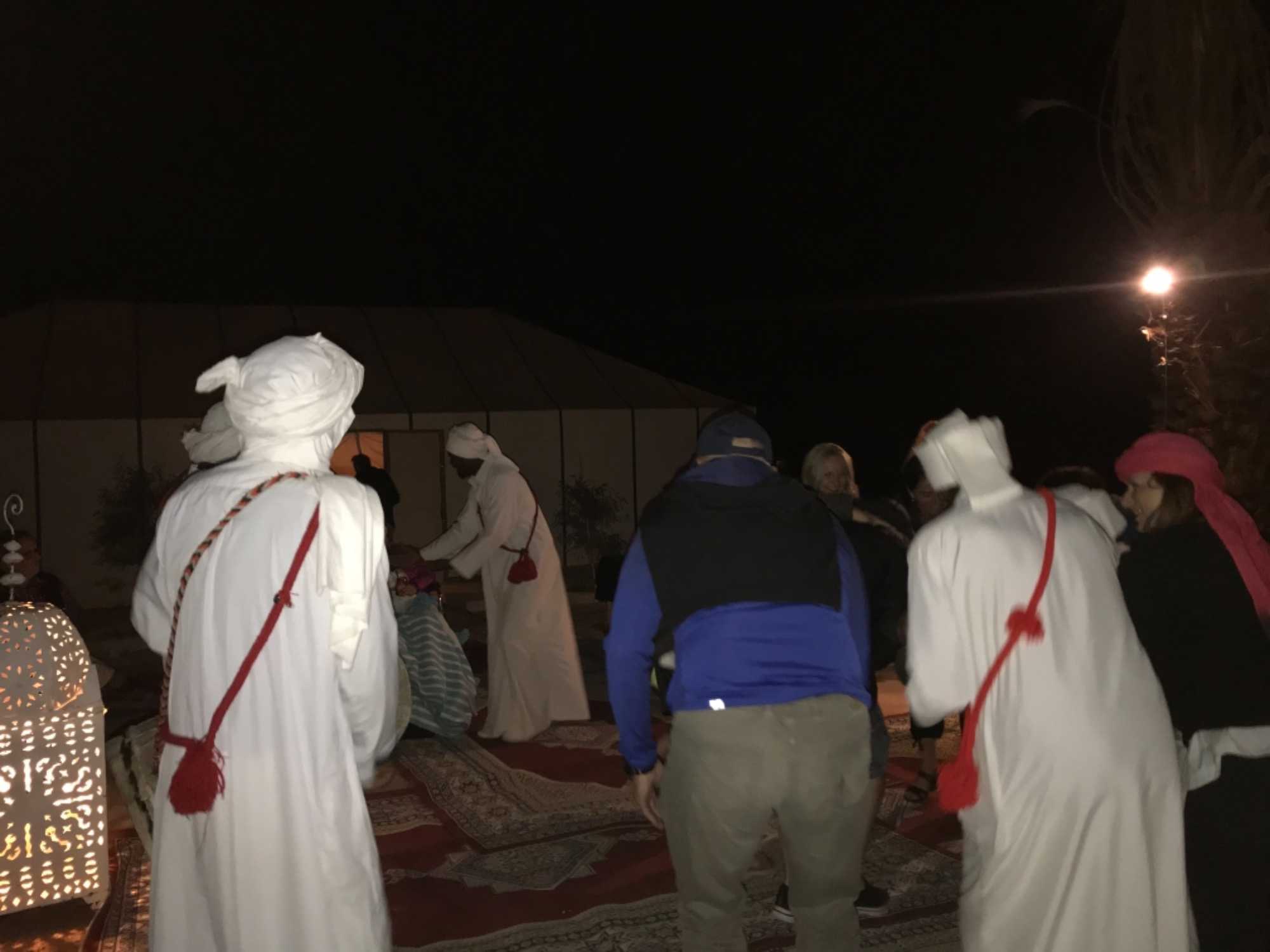 On soupe, c'est toujours très bon dans le désert. Ensuite, la troupe de danse et musique viennent nous rejoindre. Le party était au rendez-vous! On chante, on danse, on a beaucoup de plaisir!