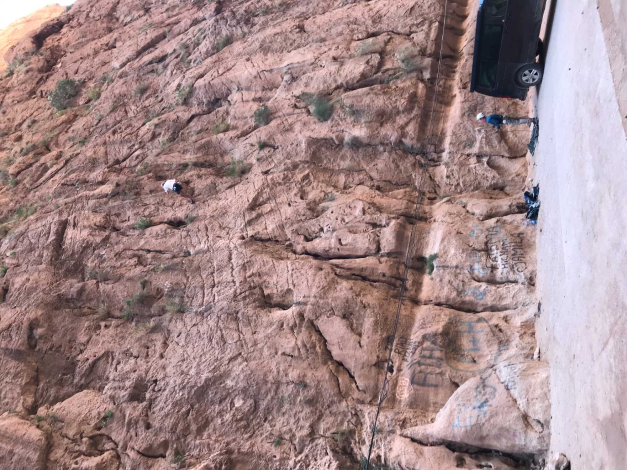 Après le dîner, continuation vers les gorges de Todra hautes falaises de calcaire creusées par l’oued il y a de ça des millénaires, on a pas assez de nos deux yeux pour tout voir.