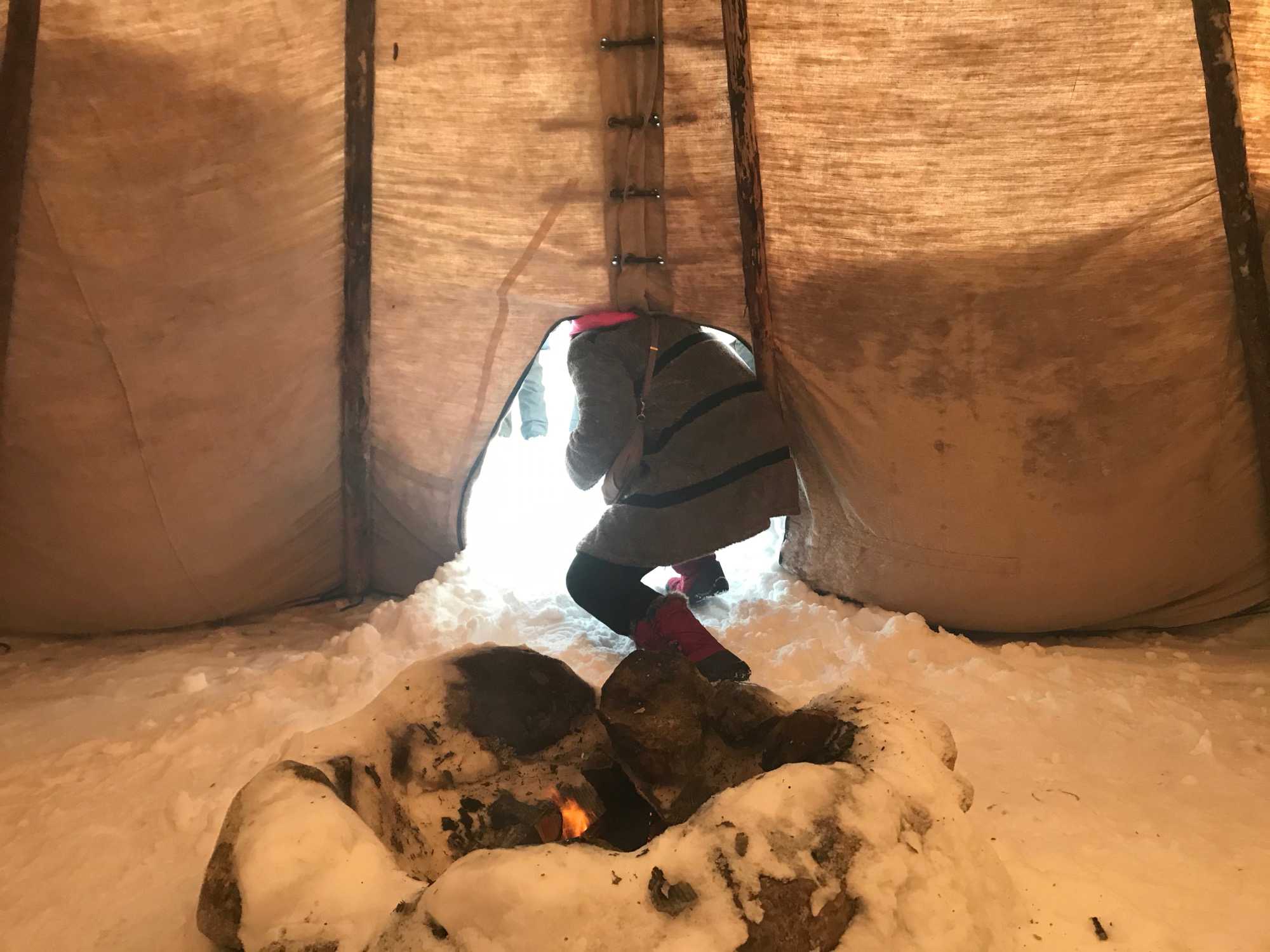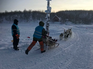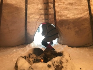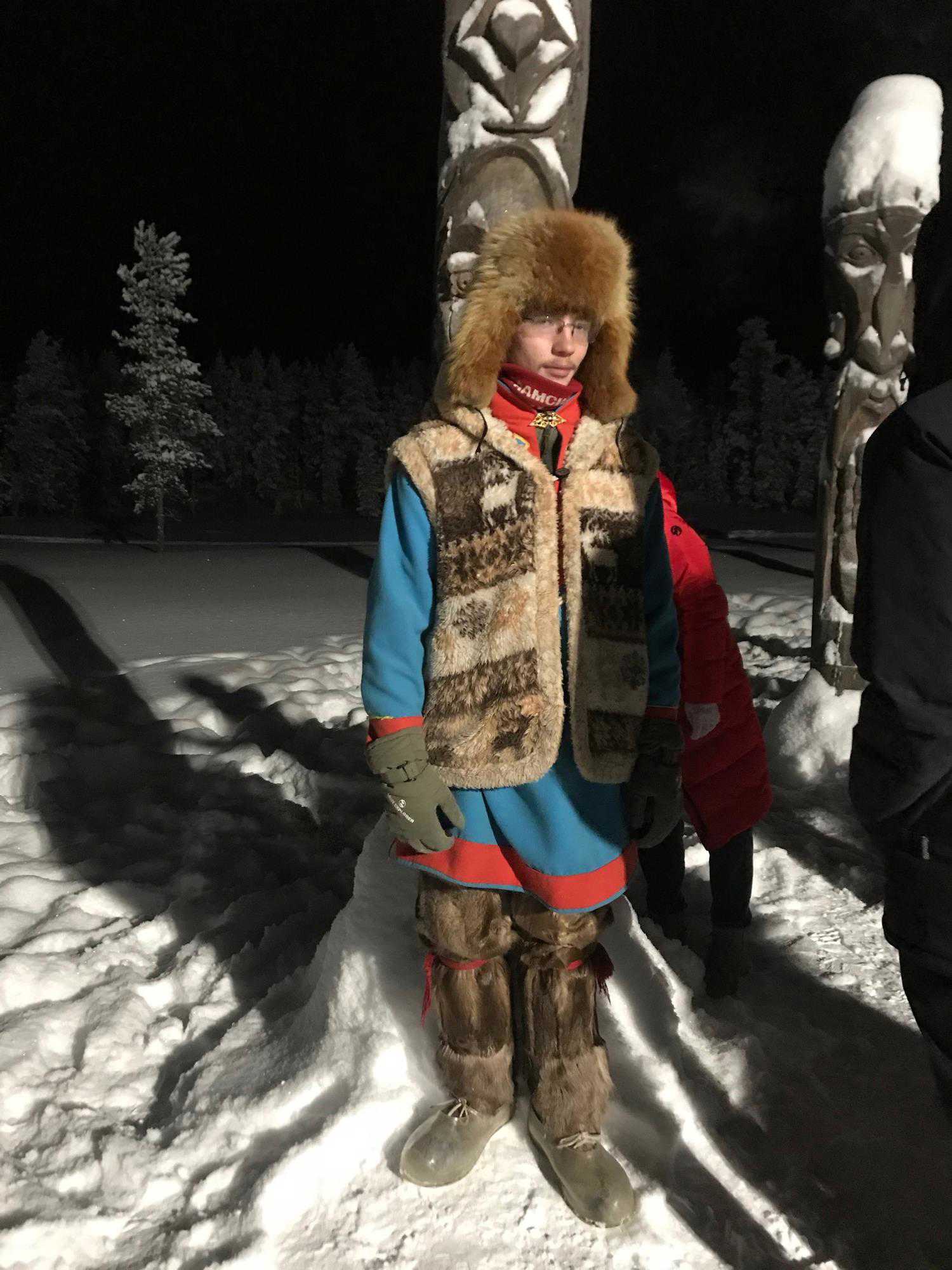 Arrivés au « village » Saami, nous sommes accueillis par les représentants d’une famille, Maria se charge de nous faire la traduction. Les Samis sont un peuple autochtone d'une zone qui couvre le nord de la Suède, de la Norvège et de la Finlande ainsi que la péninsule de Kola en Russie (où nous sommes) connue sous le nom de Laponie. Les samis parlent des langues sames. Ce peuple est souvent nommé « Lapons » mais ce terme est non seulement un terme étranger mais aussi originellement péjoratif, issu de la racine lapp qui signifie porteur de haillons en suédois. De même, ils appellent leurs terres ancestrales Sápmi et non Laponie. Les activités traditionnelles des Samis étaient autrefois la pêche et l'élevage de rennes, mais aujourd'hui seule une minorité des 85 000 Sames en vit encore.