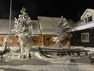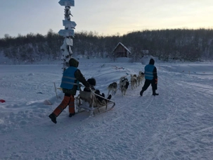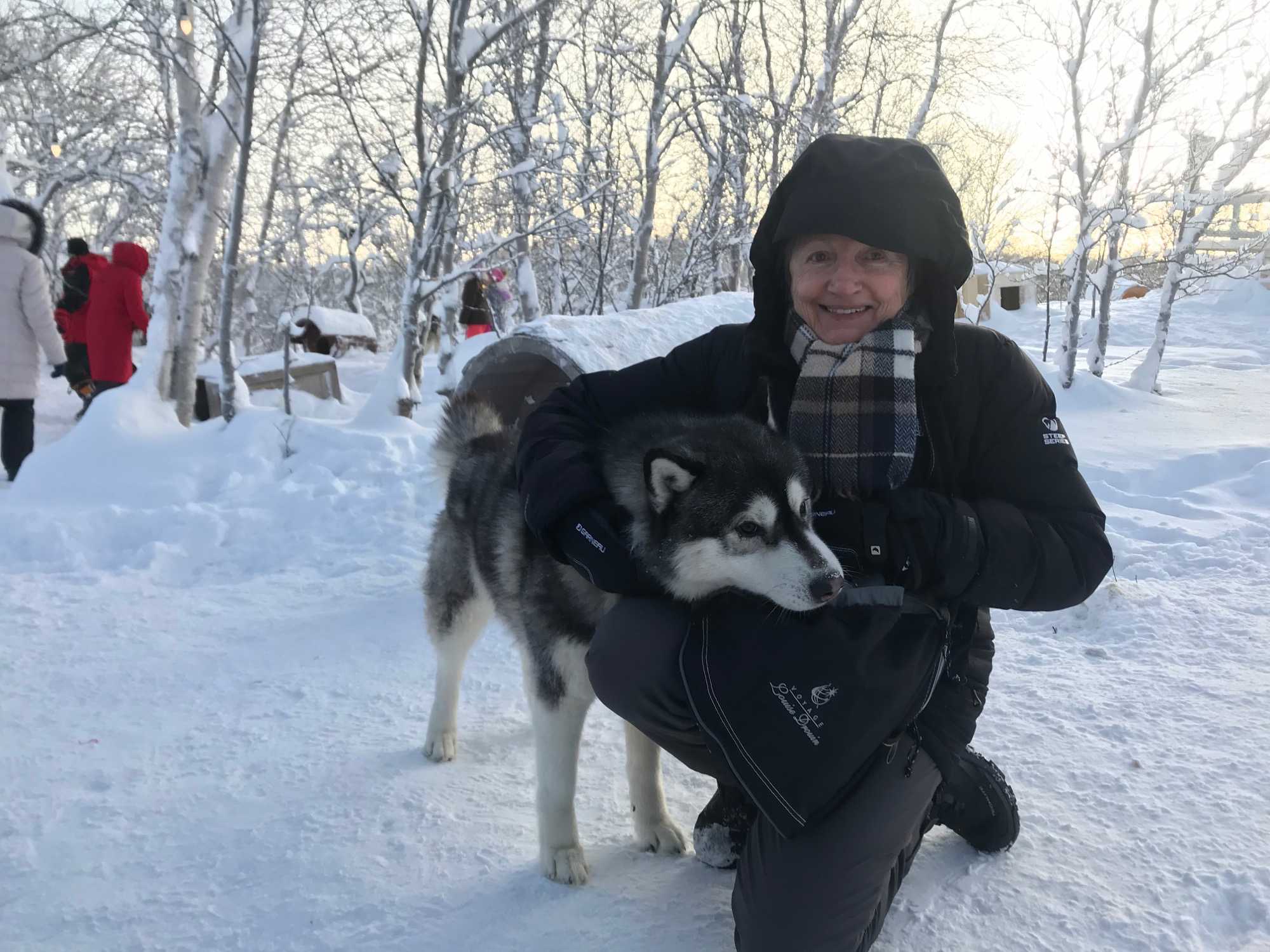 Dès notre visite terminée, nous prenons notre bus et nous dirigeons vers le parc « Aurore boréale » où nous attendent plein d’activités amusantes. On nous fait d’abord rencontrer les beaux chiens huskies et on nous donne un peu d’informations sur eux. Puis, pour ceux qui le voulaient, nous pouvions faire un tour en traîneau à chiens. Nous avons été plusieurs à profiter de cette occasion de faire cette activité avec les gens du village. Puis nous avons visité le parc des rennes et pouvions leur donner à manger. Quelle belle expérience! J’ai cherché le petit renne au nez rouge, mais ne l’ai pas trouvé… On trouve sur place aussi un lac gelé où on peut pêcher. Marie-Paule et moi avons fait de la motoneige ensemble et c’est moi qui conduisait! Cela doit faire 30 ans que je n’avais pas fait ça, mais ça a très bien été et Marie-Paule n’a même pas eu peur! Ensuite, il y a avait collation et thé servis dans une petite cabane. Marie-Paule voulait essayéçer le tour en « banane » (vous irez voir les photos). J’ai trouvé 3 autres volontaires avec Christiane, André L et la guide pour nous accompagner. Wow! On a eu bien du plaisir et le décor était majestueux! Le soleil commençait à descendre sur la cime des arbres, c’était magique.