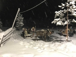 Il est près de 15h30 lorsque nous partons vers le village Saami. Pendant tout le dîner nous avons eu une belle tempête de neige, mais une fois sur la route, c’était correct. Nous avons 2h de route à faire, donc la plupart des voyageurs en profitent pour se reposer un peu.