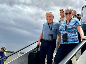 Tous bien reposés après une bonne nuit de sommeil dans un vrai lit 😊, nous prenons notre petit-déjeuner avant notre départ encore une fois pour l’aéroport qui est tout près à 5 minutes, pour notre dernier segment de vol vers la Namibie. Les conversations sont joyeuses et l’excitation d’arriver enfin à destination se fait sentir. Un petit vol de deux heures sur les ailes de South African Airways, et nous y sommes… Windhoek, la plus petite capitale au monde avec seulement 335 000 habitants sur une population totale de 1,8 millions dans toute la Namibie. Située au cœur de la Namibie et à 1 650 mètres d’altitude, la ville se déploie dans une belle vallée entourée de montagnes. Mais nous n’y restons pas aujourd’hui, nous allons y revenir en fin de parcours. Déjà notre autocar avec notre chauffeur, Moise, que nous appellerons Momo, nous attend et confortablement installés nous prenons la direction d'Otjiwarongo. La température est très agréable car ici aussi tout comme ce matin à Johannesburg ils ont eu de la pluie. Elle est bien attendue cette pluie partout dans le sud de l’Afrique. Mais une bonne pluie permet au thermomètre de descendre pour notre grand bonheur. Il devait faire un bon 24 degrés aujourd’hui pour notre première journée en Namibie. La route est belle et nous avons la chance d’avoir un autobus climatisé certes mais qui nous donne également la possibilité d’ouvrir les fenêtres. C’est super surtout pour les photos et pour avoir une ventilation agréable plus que la climatisation. Nous verrons pour les prochains jours si la température augmente beaucoup nous regarderons l’option climatisation.