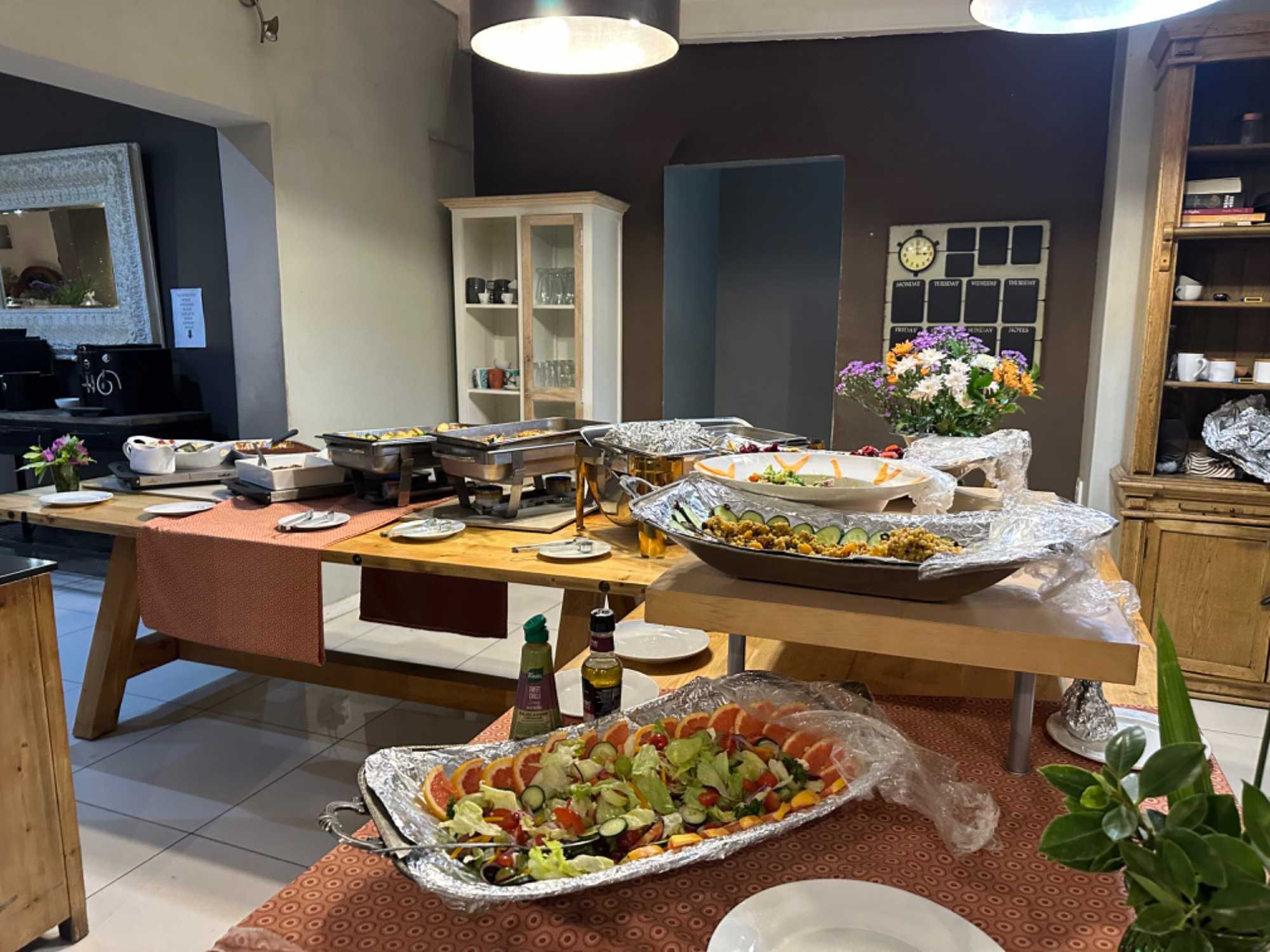 Nous poursuivons la route vers Otjiwarongo et découvrons notre hôtel 4*, le Village Boutique Hotel. Nous passerons une nuit dans ce charmant refuge contemporain et élégant. L’hôtel est moderne et nous avons du WI-FI pour donner des nouvelles à nos proches. La table est agréablement préparée pour nous recevoir et ils nous ont préparé un buffet composé de mets locaux. Nous avons entre autres un plat mijoté de springbok, cette antilope locale, très présente en Namibie et qui représente la seule gazelle d'Afrique australe. J’ai eu un faible pour la tarte de purée de citrouille, qui était délicieuse. Un excellent repas et bien accompagné de vin choisi par notre guide et sommelier, Léonce, qui tous les soirs nous explique ces choix et nous parle des cépages utilisés dans la conception de ces vins africains.