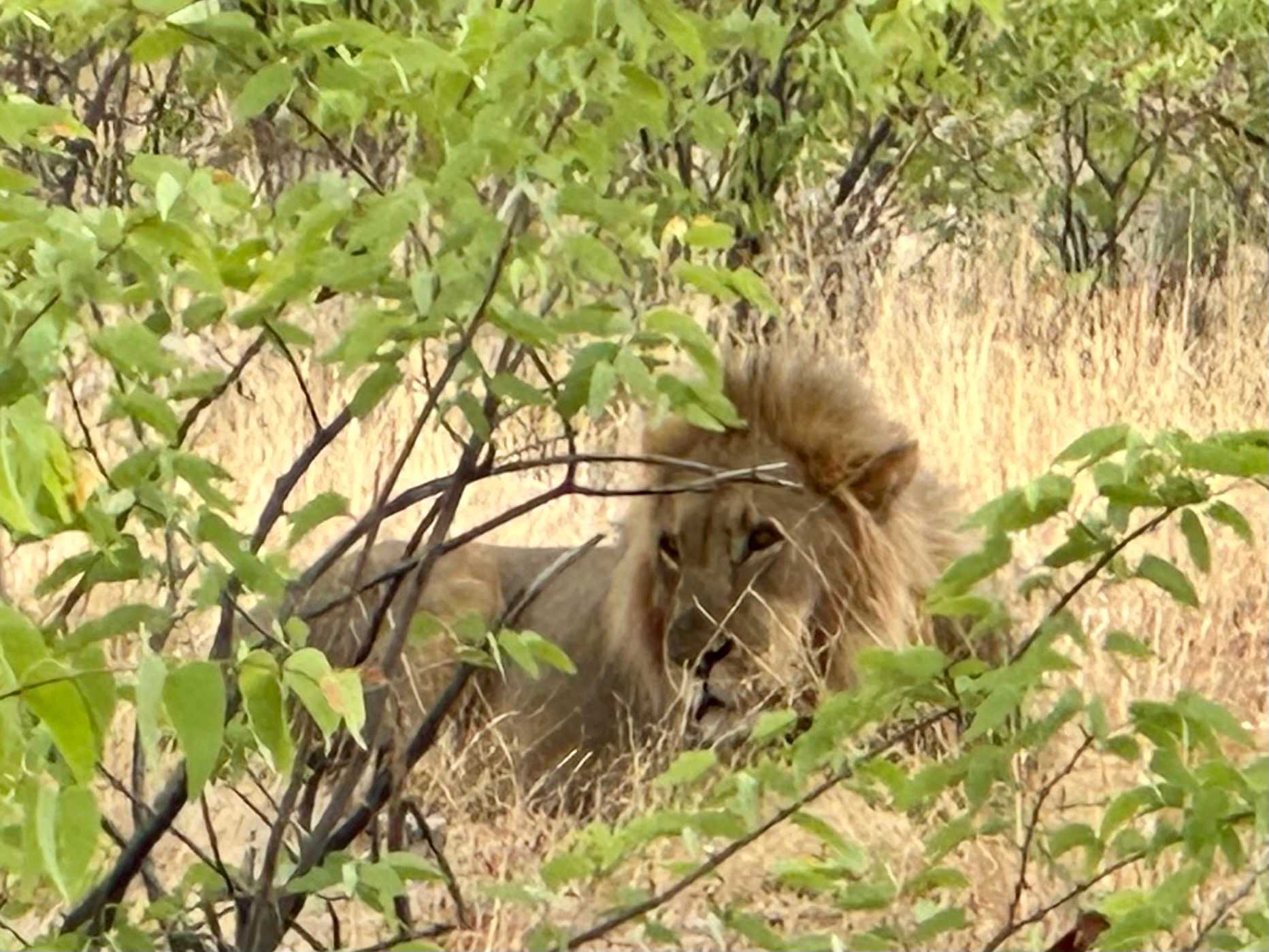 Sur la route nous apercevons deux jolies girafes et l’une d’elle désire boire dans la flaque d’eau en plein sur la route. Nous nous arrêtons pour admirer les girafes se pencher pour boire, car elles ont deux techniques : plier les genoux souvent pour les plus âgées et pour les autres tenter de faire le grand écart, pas toujours pratique d’être trop grande… juste les regarder nous comble déjà de bonheur. Notre avant-midi passe très vite et nous voici déjà de retour au paradis pour le lunch cette fois-ci à l’intérieur. Nous sommes chanceux car suite aux quelques orages de la journée précédente la température ne monte pas beaucoup. Nous avons eu un bon 26 degrés ce qui est peu pour la saison mais heureusement qu’il n’y a pas d’humidité donc supportable pour nous. Un excellent repas servi sous forme de buffet nous attendait et le tout bien accompagné de bons vins choisis par Léonce. Un peu de repos en après-midi ou baignade dans la piscine qui est assez fraîche pour notre bonheur, car c’est plus rafraîchissant.