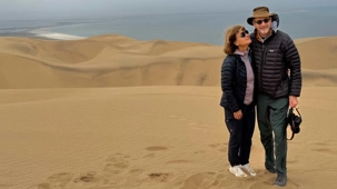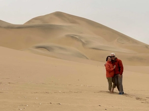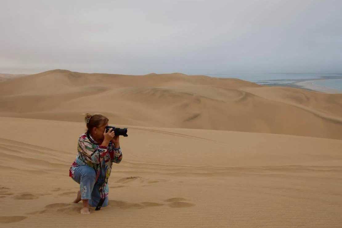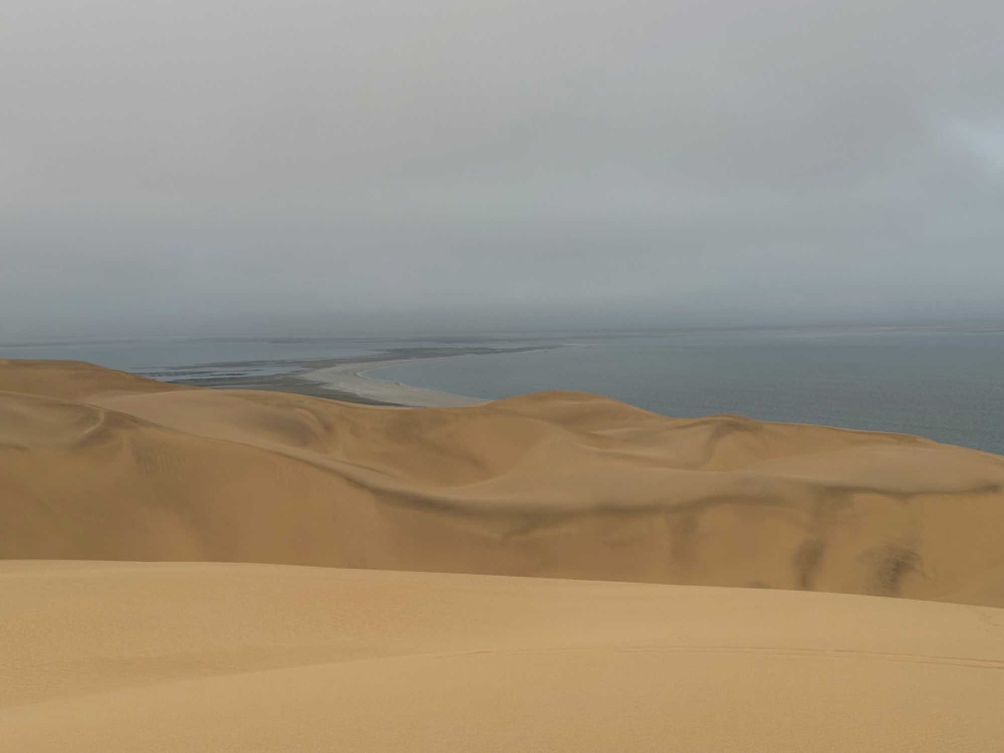Nous mangeons tranquillement et nous profitons de chaque minute tout en dégustant notre vin mousseux africains. La dolce vita sous le ciel bleu de la Namibie. Après le repas nous voyons approcher notre bateau de croisière qui vient nous chercher devant notre tente que dire de plus à part que tout est parfait. Nous montons à bord pour aller faire la découverte de cette région et de ses nombreuses colonies d’otaries à fourrure, de flamands, de pélicans et bien d’autres oiseaux. Sandwich Harbour, site merveilleux où les dunes et le lagon offrent un spectacle fabuleux. Le port de Sandwich est une région de la côte atlantique de la Namibie qui comprend une baie au nord et un lagon à l'extrémité sud. Autrefois, la baie était un port commercial de taille moyenne basée sur la chasse à la baleine et la pêche artisanale, mais elle est maintenant mieux connue pour ses oiseaux dans le lagon au sud de la baie. La lagune a une longueur de 3,7 km et une largeur de 1 km. Elle est limitée par le désert de sable sur son côté est. Les anciens visiteurs de la région ont supposé́ que l'eau de la lagune était fraîche, mais une étude récente a révélé que la lagune est remplie d'eau saumâtre de qualité médiocre qui s'infiltre sous les dunes et permet la croissance de grands roseaux au niveau de l'eau.