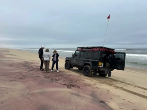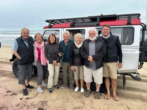 Un agréable petit-déjeuner nous attendait à notre bel hôtel. Comme nous sommes sur le bord de l’Atlantique, c’est normal à notre réveil d’avoir un peu de brouillard sur la mer mais tout partira en matinée. Un petit 20 minutes de route à bord de notre autobus avant de rejoindre le Yacht-Club de Walvis Bay, où nos véhicules 4x4 nous attendaient pour notre expédition vers Sandwich Harbour, site merveilleux où les dunes et le lagon offrent un spectacle fabuleux. Nous vivrons l’aventure et la beauté de l’exploration du désert le plus ancien du monde. D’ailleurs, le terme « Sandwich » fait référence au fait que cette zone est enclavée entre l'océan Atlantique et les dunes du Namib! En accord avec la marée, notre véhicule se faufile le long de la plage bordée par les hautes dunes de sable. Ce sont de superbes jeeps Land rover conçus pour ces expéditions. Notre charmant et beau chauffeur Norman nous parle de cette belle région. Les superbes résidences sur le bord de la mer sont impressionnantes et nous démontrent la richesse de certains Namibiens. Un endroit de retraite privilégié pour avoir un peu de fraîcheur, car ici ils n’ont pas de chaleur extrême donc beaucoup plus confortable dans ce pays aride de déserts. Quel spectacle!