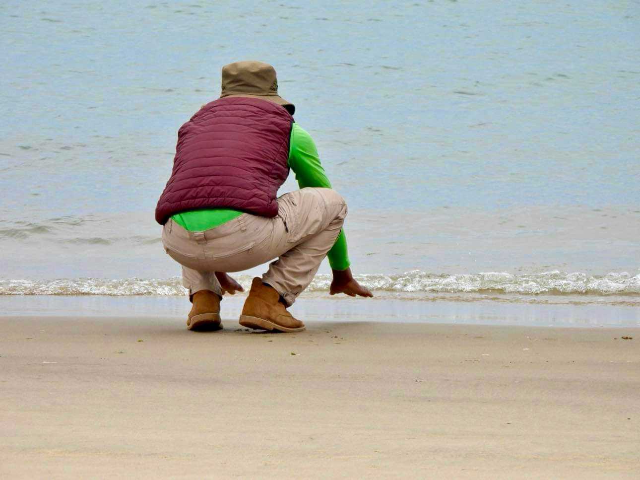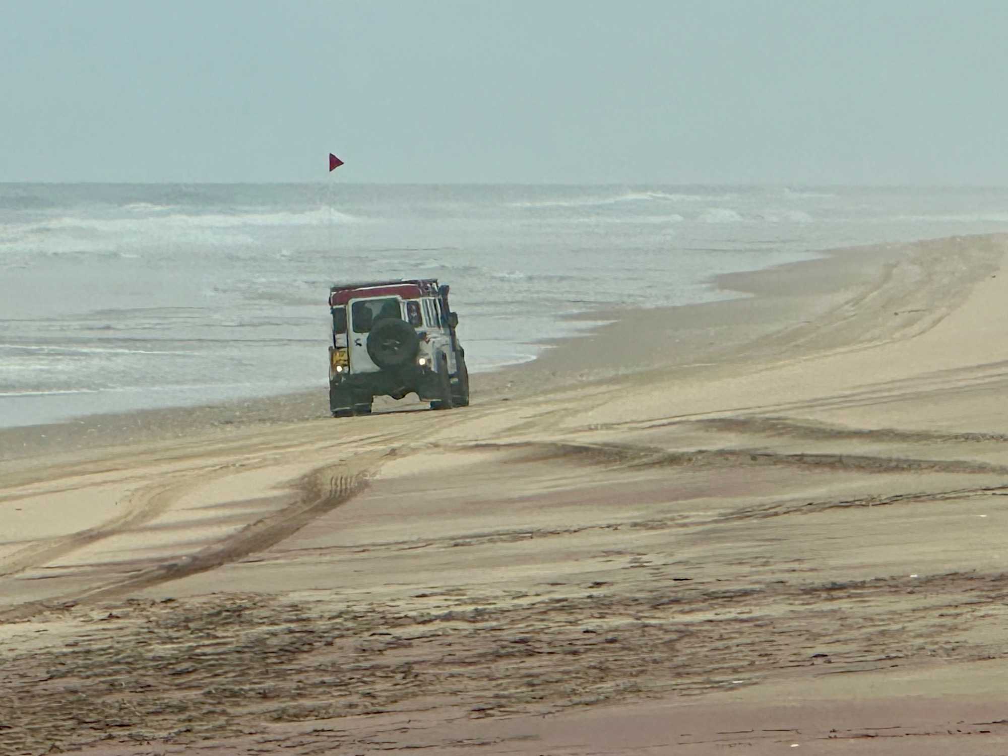 Nous débutons notre journée par un arrêt pour admirer les flamants roses et ils sont magnifiques et colorés. Les photos sont superbes surtout avec leurs reflets dans l’eau. Nous longeons la mer et l’on voit de nombreux oiseaux surtout beaucoup de sternes et d’autres regroupements de flamands. Plusieurs pêcheurs de morue s’installent pour la journée surtout que nous sommes dimanche où plusieurs ont congé. Ils s’installent tous le long de la côte. Amusant de tous les voir avec leur canne à pêche. Nous avons roulé pour arriver à la mer sur des routes de sel tout en croisant des installations de transformation du sel. Notre guide nous informe que le sel n’est pas utilisé comme sel de table, mais pour toutes ses autres utilités. Les couleurs de l’eau près de ces installations sont très intéressantes à photographier. C’est impressionnant de voir la jeep rouler si facilement sur la plage. MAGNIFIQUE!