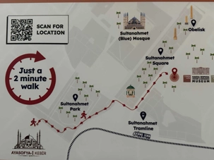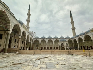 Pour accéder à la Mosquée bleue nous sommes descendus dans le quartier historique d’Istanbul, la place Sultanahmet afin d’y découvrir les attractions historiques les plus emblématiques de la ville. Des obélisques et des fontaines ornent le parc, tandis que la place conserve les vestiges d’un ancien hippodrome. De cet endroit nous avions la possibilité de contempler deux des sites d’intérêt les plus prestigieux de la ville, l’un au nord, l’autre au sud. Il s’agit de la célèbre basilique Sainte-Sophie, une mosquée du VIe siècle qui abrite aujourd’hui un musée, et de la mosquée Sultanahmet, à laquelle la place doit son nom, communément appelée la Mosquée bleue.
