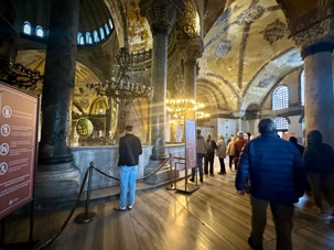 Istanbul est une métropole au charme intemporel et au patrimoine historique mirifique. Connue autrefois sous les noms de Byzance et Constantinople, Istanbul était le centre névralgique des Empires romain, byzantin et ottoman. Un peu partout en ville, de nombreux édifices historiques remarquables témoignent encore de ce passé prestigieux. Parmi eux figurent la basilique Sainte-Sophie, qui a su résister à l’épreuve du temps et continue d’émerveiller les visiteurs avec ses superbes mosaïques que nous avons visité ce matin. Sainte Sophie, qui est l’un des joyaux du centre historique d’Istanbul. La basilique Sainte-Sophie, dont le nom turc signifie « sagesse divine », fut érigée par l’Empire romain d’Orient au VIe siècle. Elle fut, par la suite, transformée en mosquée et fortifiée sous le règne de Mehmet II le Conquérant en 1453. Nous avons admiré les éléments en marbre et les intérieurs fascinants de cette merveille architecturale. Elle abrite des panneaux ornés de calligraphies et des lampes en bronze, et la plupart de ses murs sont couverts de magnifiques mosaïques composées d’or, d’argent et de pierres colorées.