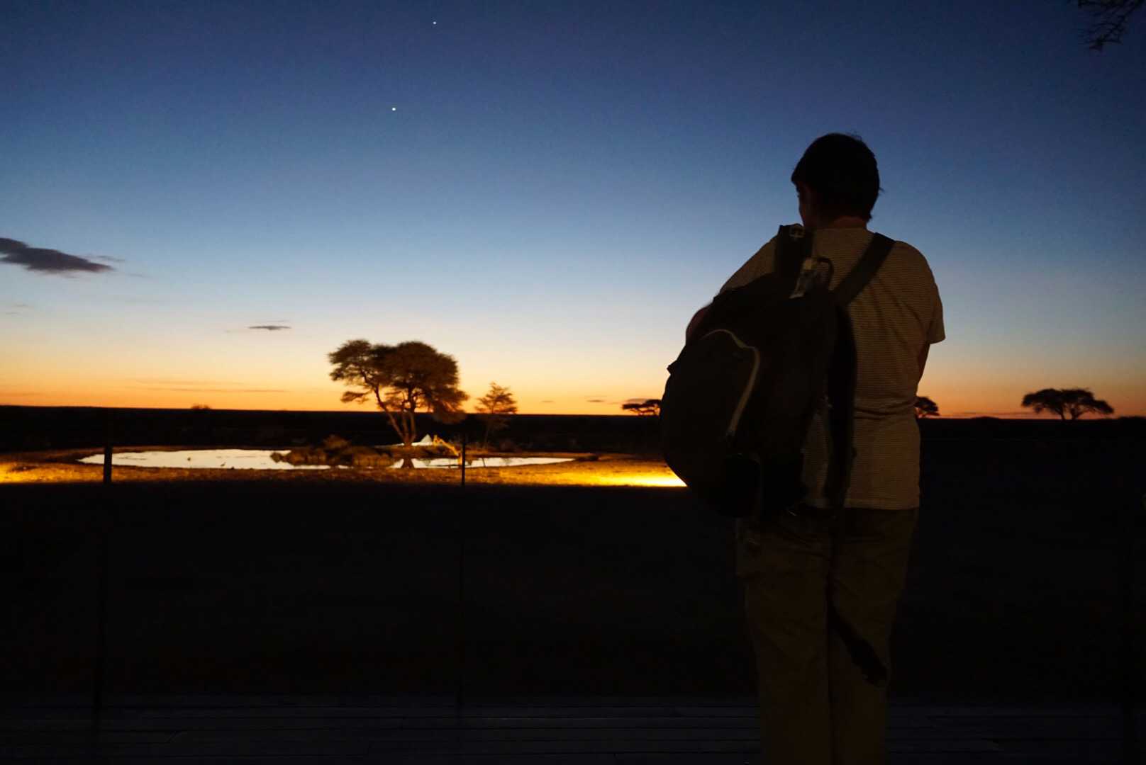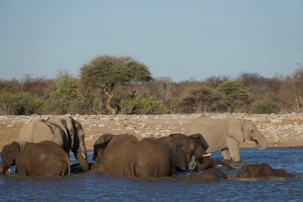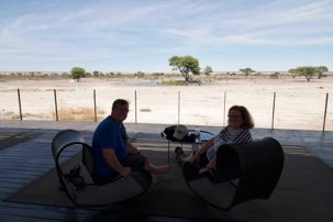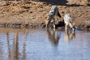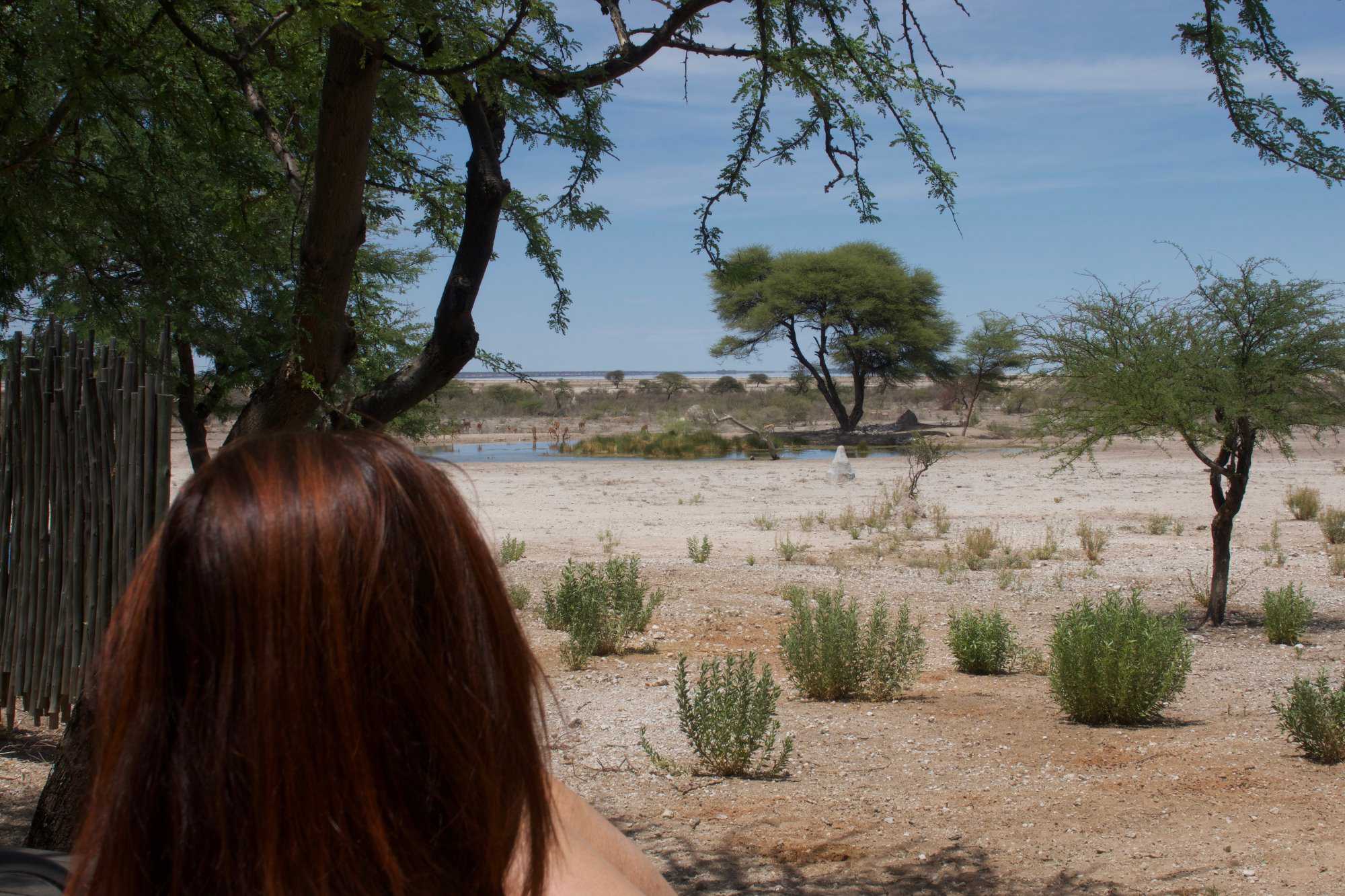 Au premier plan d’eau nous nous arrêtons pour admirer les girafes se pencher pour boire car elles ont deux techniques : plier les genoux souvent pour les plus âgées et pour les autres tenter de faire le grand écart, pas toujours pratique d’être trop grande… juste les regarder nous comble déjà de bonheur. Les zèbres viennent les rejoindre, accompagnés de petites antilopes et aussi de chacals. Tous se partage ce plan d’eau et souvent s’amusent en même temps. Notre avant-midi passe très vite et nous voici déjà de retour au paradis pour le lunch cette fois-ci à l’intérieur car le soleil prend de la force et la chaleur se fait sentir. Heureusement qu’il n’y a pas d’humidité donc supportable pour nous. Le thermomètre devrait atteindre un bon 37 degrés aujourd’hui. Un excellent repas servis avec soin nous attendait et le tout bien accompagné de bons vins choisis par Léonce. Un peu de repos en après-midi ou baignade dans la piscine qui est assez fraîche pour notre bonheur car c’est plus rafraîchissant.