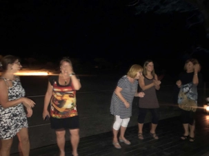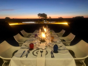 De retour au lodge nous sommes accueillis sur la terrasse à l’étage pour un apéro tout en admirant le super coucher de soleil. La vie est belle ! Nous retournons à nos chambres pour se doucher et revenir manger sur la terrasse au coucher de soleil. Les photos sont presque trop belles pour y croire. Comme dans un film on se retrouve bien confortablement assis avec un menu haut de gamme pour notre souper en plein air. Durant le repas une petite surprise celle des employés qui viennent nous chanter et danser au son du tam tam un jam africain. C’est à ce moment que l’on se sent vraiment en Afrique. C’était un beau moment de partage et juste avant vous verrez notre belle Loulou entourée de membres du personnel avec qui elle partageait des photos de notre hiver québécois sous leur regard étonné et souriant.