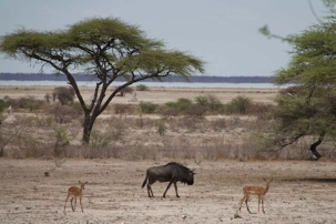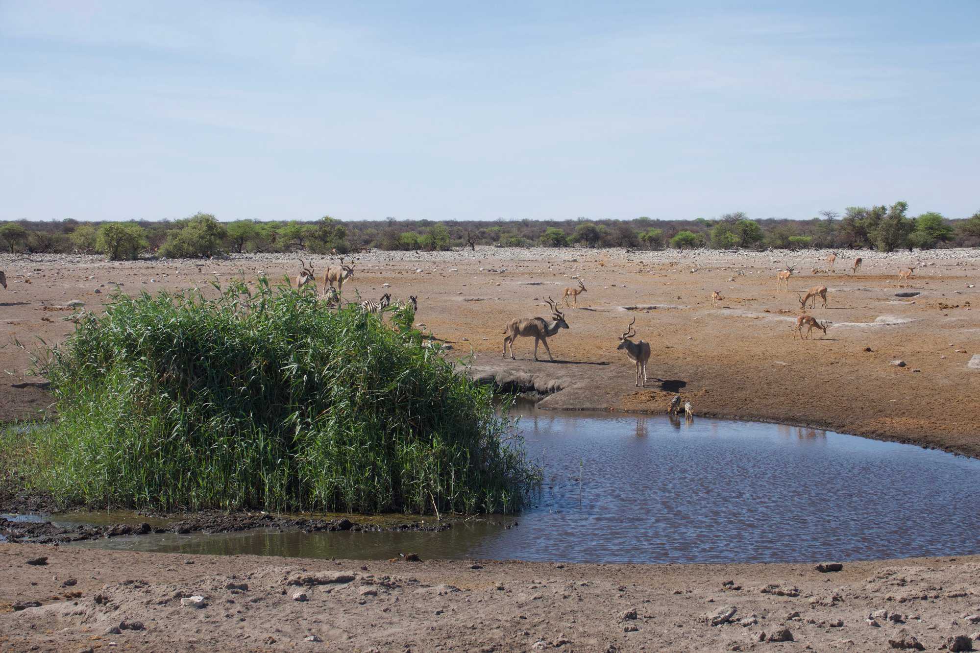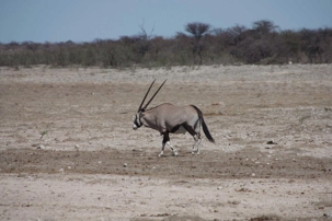 Nous parcourons le parc en nous arrêtant fréquemment pour photographier toutes les espèces que vous verrez sur nos belles photos. Nous photographions les gnous qui ne sont pas super jolis, mais aussi le plus bel animal, l’orynx qui est le l’emblème de la Namibie. Il est si beau avec ses longues cornes et ses couleurs si bien définies sur son corps élancé. Le plaisir est au rendez-vous et les appareils photos ne chôment pas. Nous aurons besoin de beaucoup de cartes mémoires pour nos appareils photos.