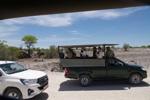 Ce matin, d’autres animaux sont venus saluer mes voyageurs durant leur petit déjeuner. Nous reprenons notre autobus pour aller rejoindre à l’entrée du parc trois nouveaux jeep avec des ranchers pour faire la traversée du parc d’est en ouest afin d’aller retrouver notre prochain lodge situé dans l’ouest du parc. Afin de profiter et faire la route en safari, j’avais prévu les services de ces ranchers et de leurs jeeps pendant que notre chauffeur, lui, traversait avec le bus et nos valises le parc mais sans nous. C’est beaucoup plus agréable de le faire en jeep surtout en safari.