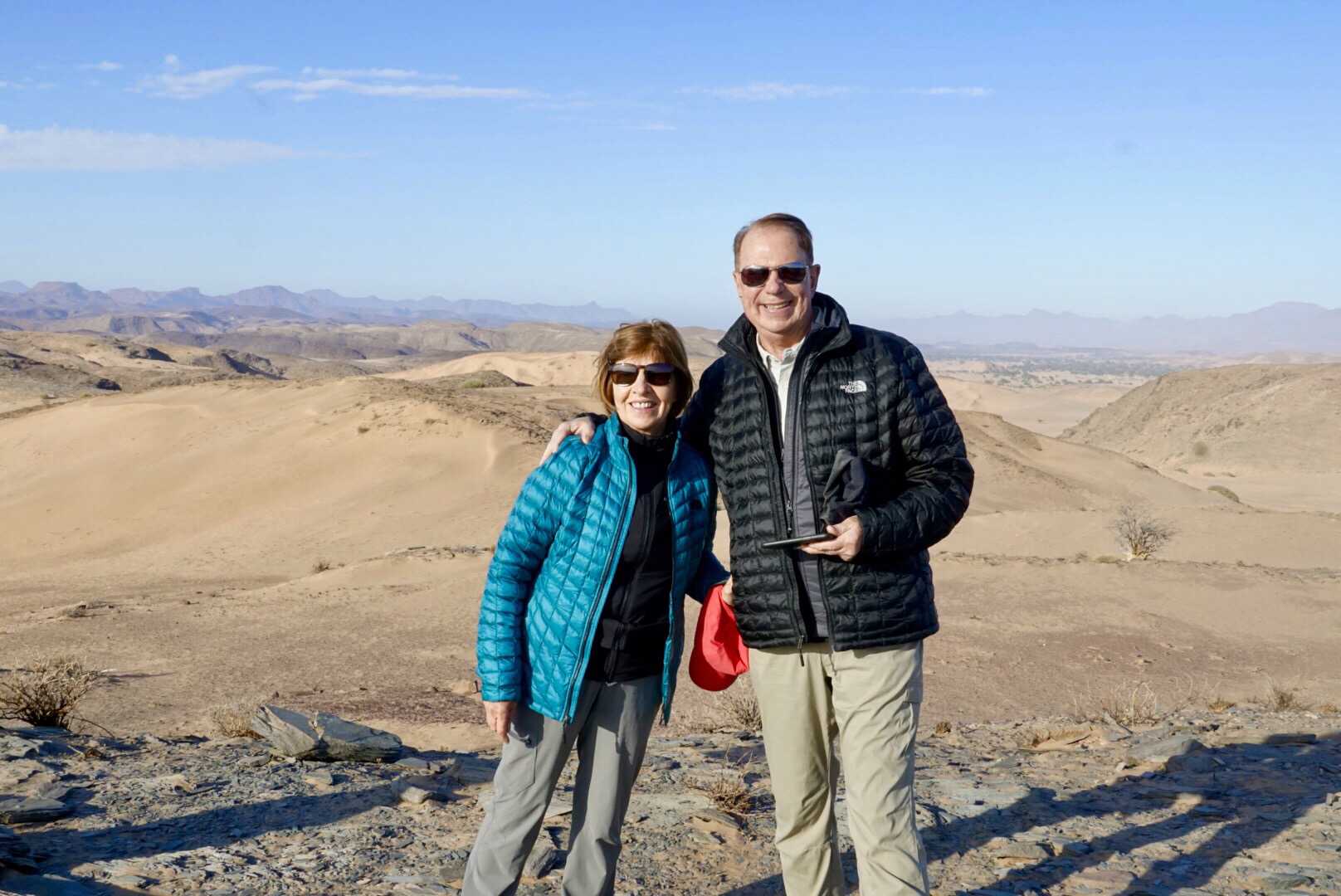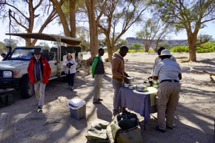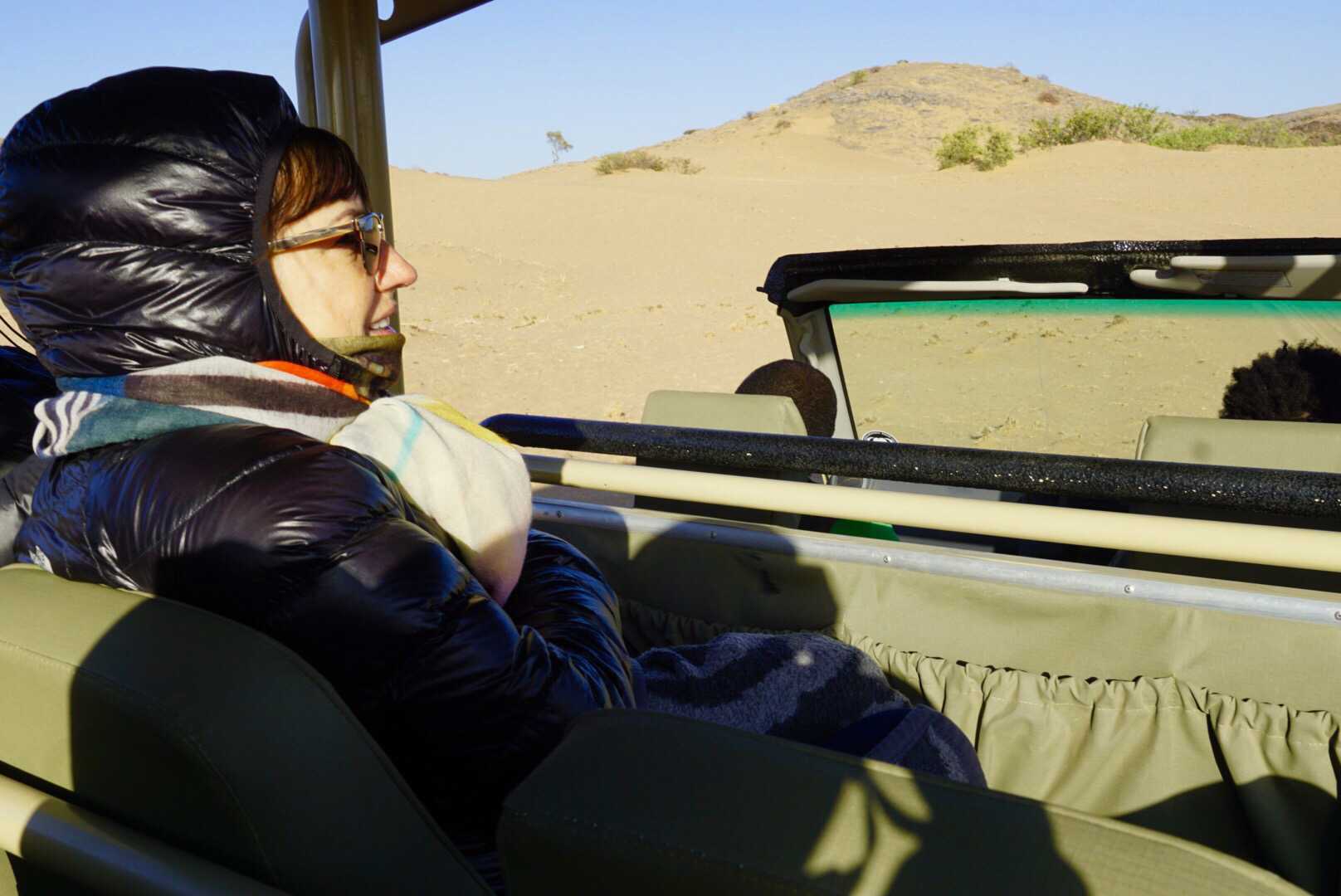 Il fait bon ce matin et le soleil est au rendez-vous encore aujourd’hui pour notre grand bonheur. C’est suite à notre succulent petit-déjeuner que nous partons à la rencontre des rares éléphants habitant le désert lors d’un safari qui nous emmènera au coeur des plaines arides et poussiéreuses du Damaraland.