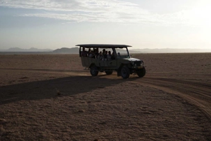 Notre excursion matinale à destination des dunes de Sossusvlei était bien attendue car nous pourrons admirer les plus hautes dunes du monde! Nous roulons dans le désert avec une superbe lumière pour les photographes. Nous arrivons après près de 30 minutes de route à l'incroyable site de « Sossusvlei », où nous trouverons les plus hautes dunes du monde (plus de 300 mètres) dans le plus vieux désert de la planète!
