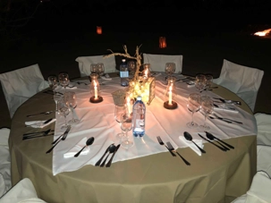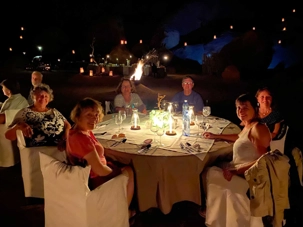 Tous pensaient regagner le lodge pour le souper eh bien non! Ce soir, le souper était tout comme le petit déjeuner, digne des gens riches et célèbres et même plus! Nos chauffeurs reprenaient la route vers le lodge en contournant une montagne avant de s’arrêter devant un paysage de rêve. Un désert décoré de lanterne avec une allée magistrale pour nous accueillir. J’ai eu un flash de la promenade vers Petra illuminée par les lanternes sur notre parcours. Personne ne parlait et on se pinçait comme c’était beau. Plusieurs lanternes dans la colline juste où notre buffet chaud était monté. WOW WOW WOW!!!!!!! Le montage de cette soirée était sublime. Les toilettes aménagées pour la soirée, illuminées par des lanternes étaient aussi superbes. Nous avions 3 tables rondes avec nappes blanches et chaises blanches et nous étions dans le sable du désert. Les photos ne rendront jamais ce que nous avons vécu durant cette soirée car tout était parfait, tout comme le vin assorti qui accompagnait le repas. Encore une fois, le buffet chaud et froid était préparé pour au moins 50 personnes. J’ai demandé à un des chefs ce qu’ils feront avec la nourriture non mangéé ce soir car oui il en aura encore beaucoup. Ils m’ont bien rassurée en mentionnant que cela serait redistribué pour le personnel de l’hôtel. Tant mieux car on ne voudrait pas que cela se perde. Nous avons mangé sous un ciel étoilé à la lueur des chandelles et des lampes sur nos tables. Il faisait beau et chaud, quelle soirée sortie d’un conte de fée.
