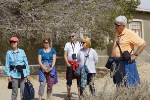 Après cette visite nous poursuivons notre route vers notre prochaine étape. En cours de route, nous nous arrêtons à un point d’eau qui aide les animaux du désert à survivre. Arrivés sur place nous y avons vus des oryx, des autruches et quelques chevaux. Les chevaux sauvages du Namib ont fait couler énormément d'encre : leur origine, leur incroyable résistance aux conditions extrêmes du Sud Namib et bien d'autres sujets ont nourri une polémique toujours d'actualité. Ces chevaux se retrouvent principalement dans la région à l'Ouest de la ville d'Aus, sur la route de Lüderitz, ainsi que dans la vallée de la rivière Koichab. Aujourd'hui, ils sont hautement protégés et surveillés par la Direction namibienne de conservation de la nature. Léonce nous raconte comment les chevaux ont été relâchés dans le désert suite au départ de leurs propriétaires. Revenant des toilettes, je m’approchais et je voyais un très beau cheval venir vers moi. Un moment magique! Je lui parlais et il s’approchait... C’était touchant, moi qui adore les chevaux.