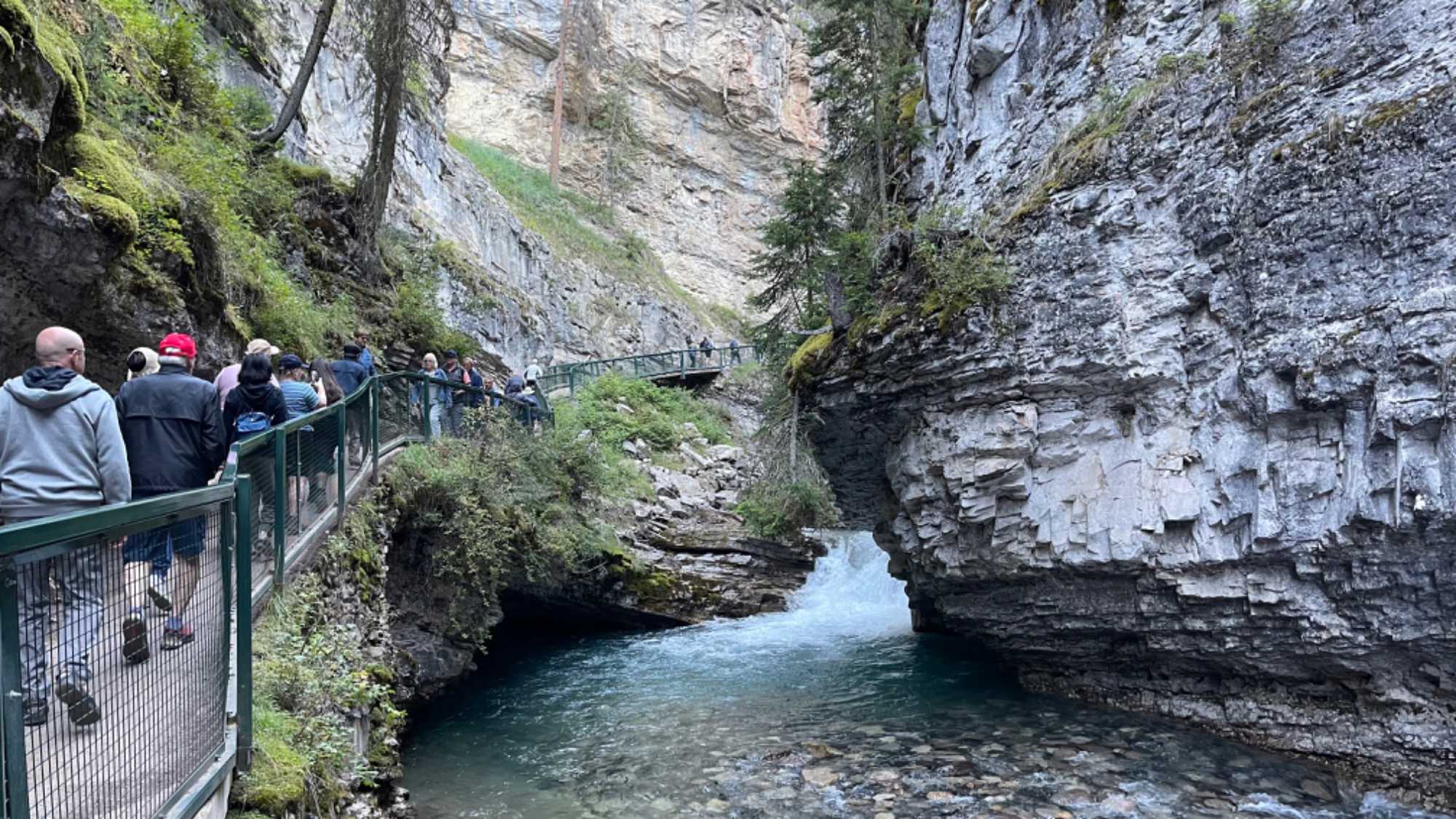 Tout au long du parcours, des garde-corps sécurisent la randonnée et des panneaux d'interprétation y sont installés. Après 1.2 km de marche, les chutes inférieures se dressent devant nous, c’est donc une marche de près de 2.4 km aller/retour. L’air est frais et l’odeur intense des pins et sapins emplis nos narines. Nous savourons cette nature qui s’offre à nous.
