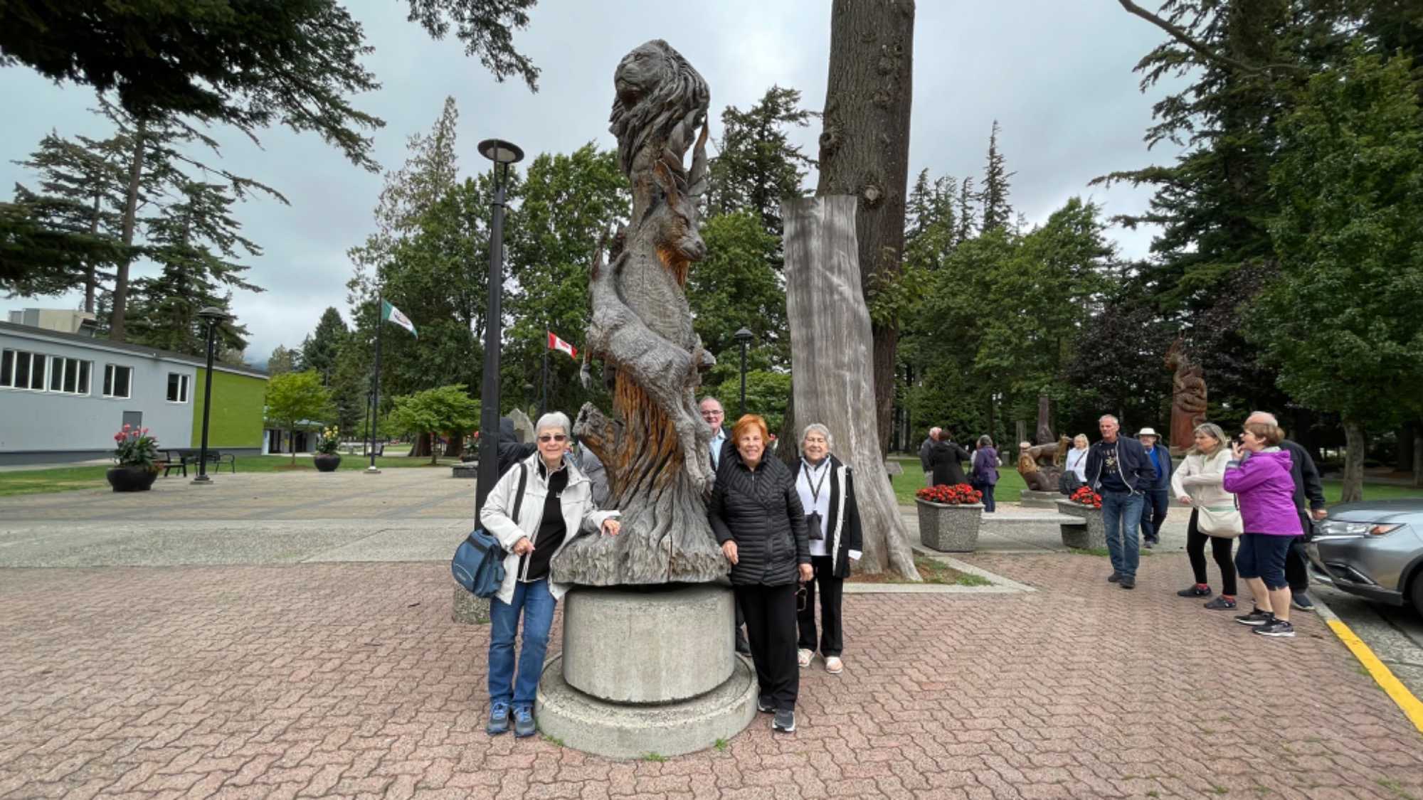 On dîne à Hope, au confluent du fleuve Fraser, le plus long fleuve de la Colombie Britannique, qui prend sa source au mont Robson, la plus haute montagne de la chaîne des Rocheuses, et de la rivière Coquihalla. Un excellent repas fait maison. Nous allons par la suite observer les superbes sculptures qui font la renommée de la ville de 5000 habitants. Plusieurs scènes du film Rambo y ont été tournées. En effet, il y a plus de 30 ans, Hollywood est venu au nord et a transformé cette petite ville canadienne en une petite ville américaine.