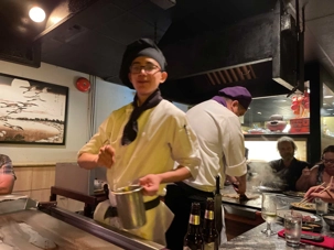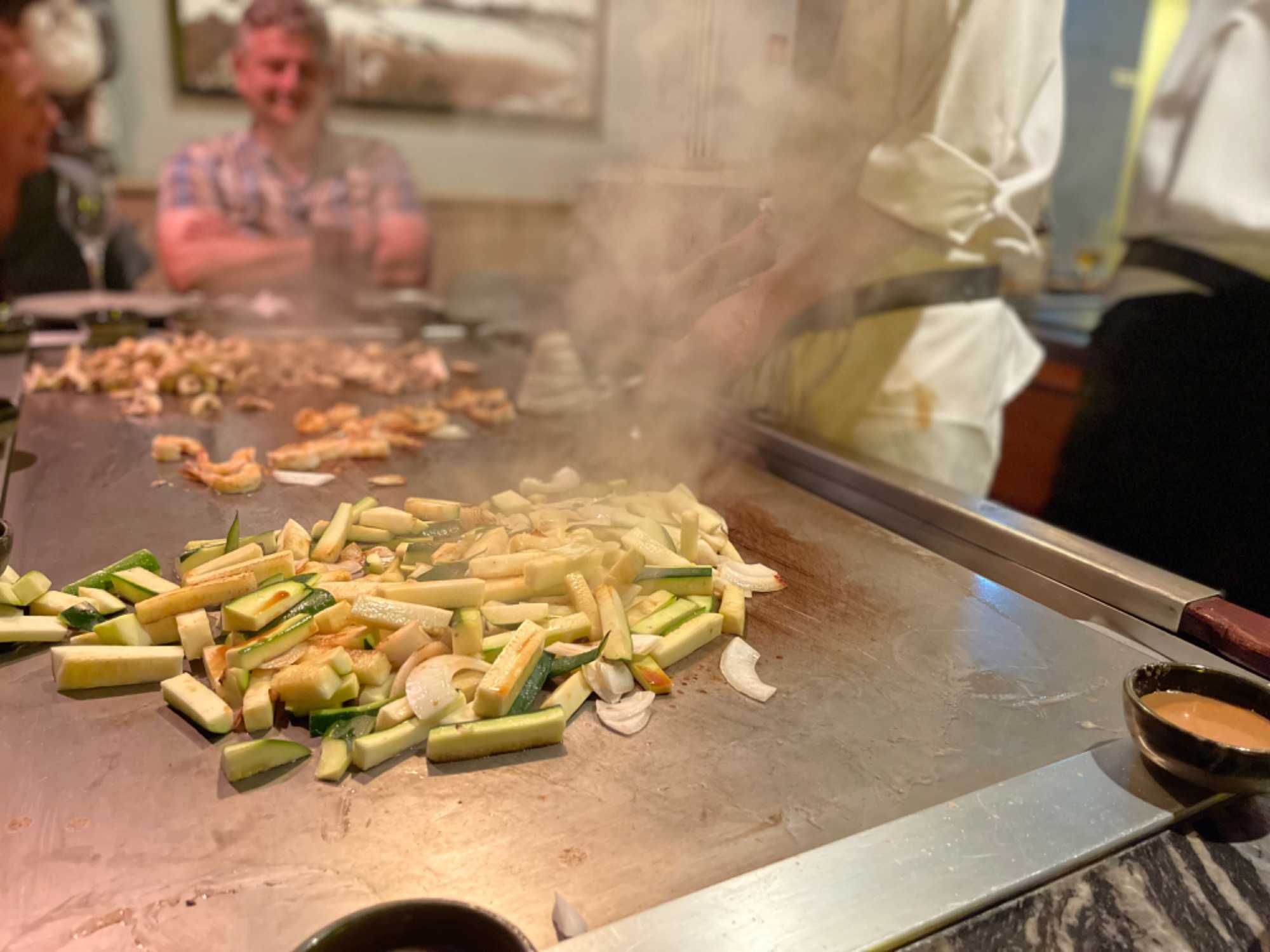 Souper de groupe, mais pas n’importe lequel : un souper à des tables de cuisson à la japonaise. C’est un spectacle en soi. Le souper fut apprécié de tous.